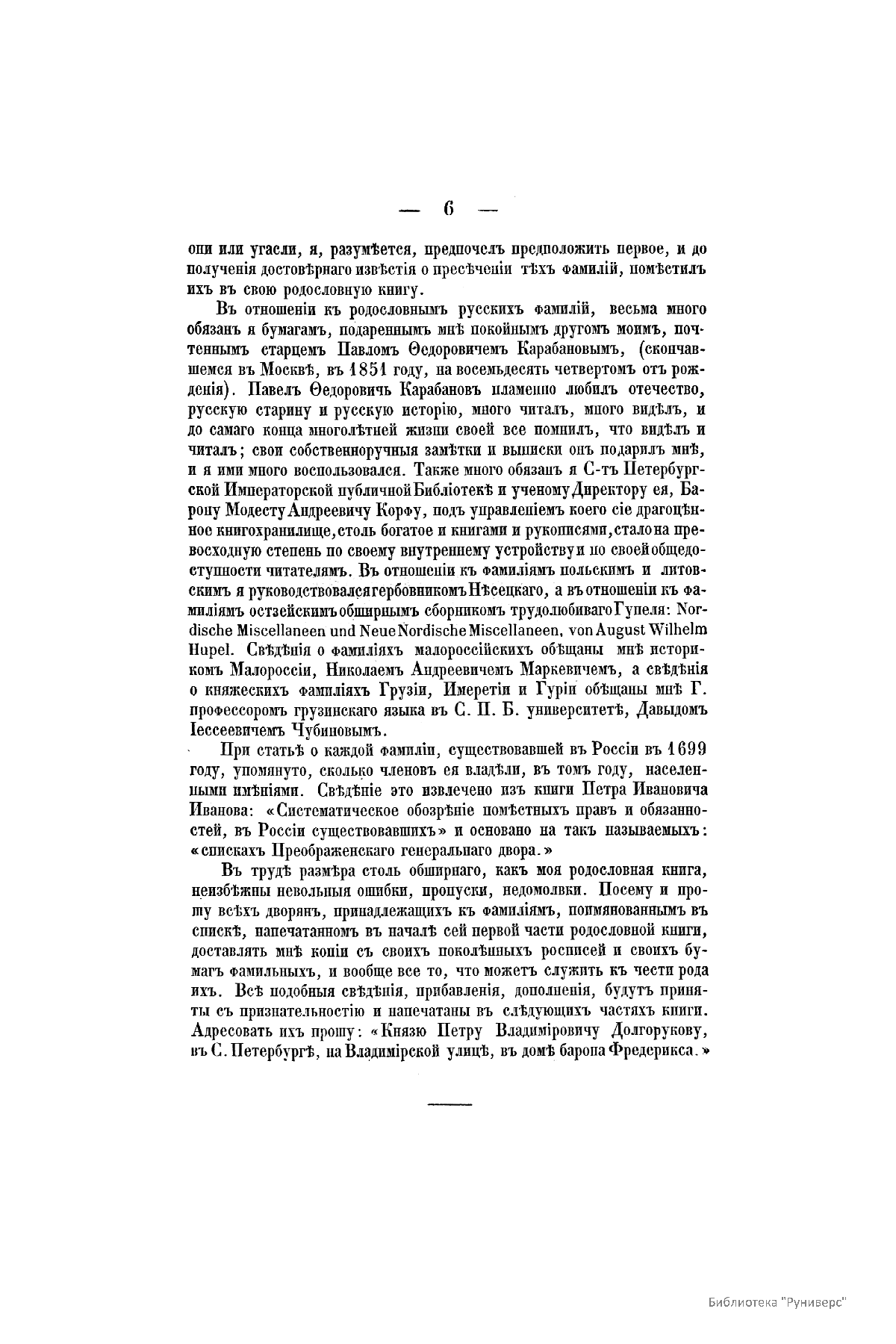 «Российская родословная книга» выделяется из ряда других изданий тем, что это первый хорошо структурированный источник, содержащий сотни фамилий русских и иностранных родов. Поколенная роспись родов, предложенная в этой работе П.В. Долгоруковым, обрела популярность и использовалась большинством исследователей в генеалогии. С исследований П.В. Долгорукова начались общие справочные издания по родословию русского дворянства.