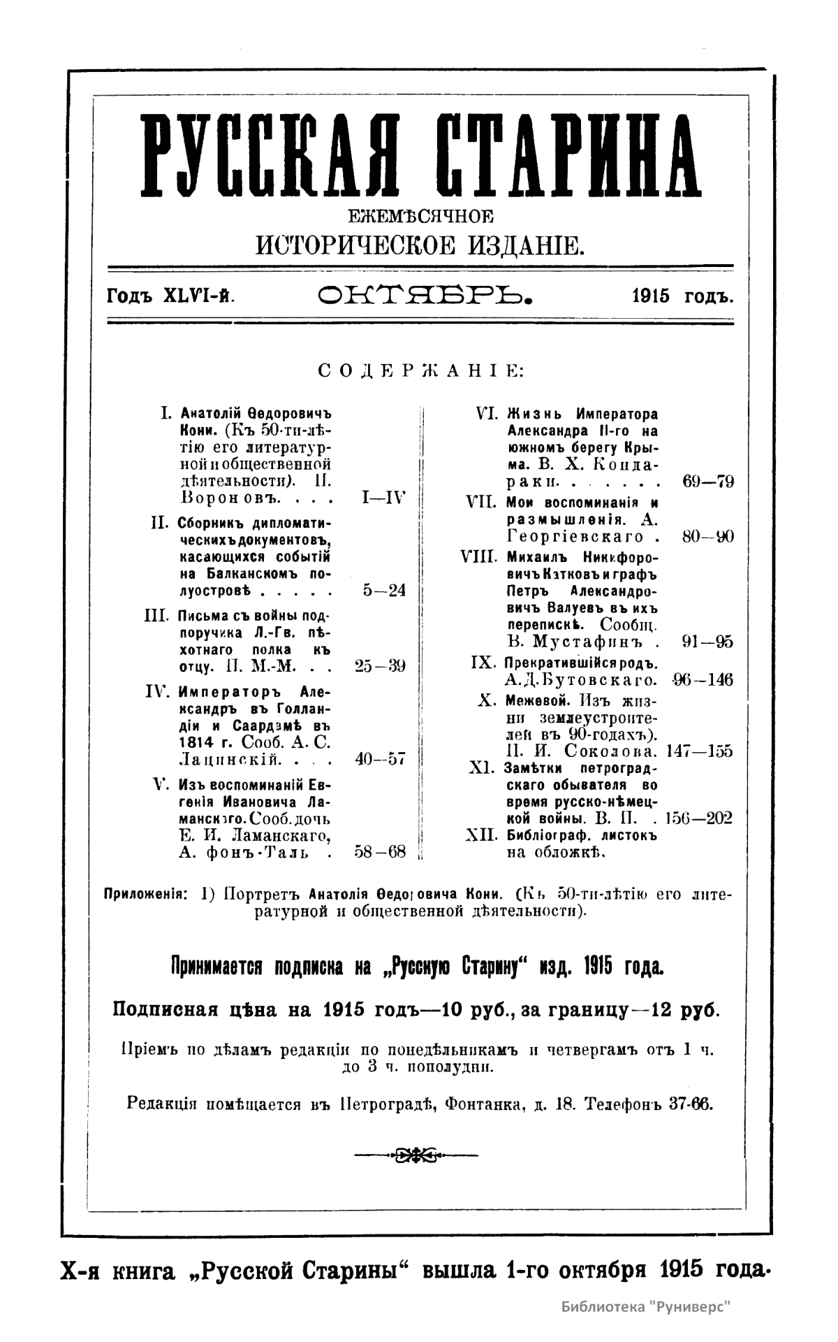Русская старина. Томъ CLXIV. 1915. Выпуски 10-12