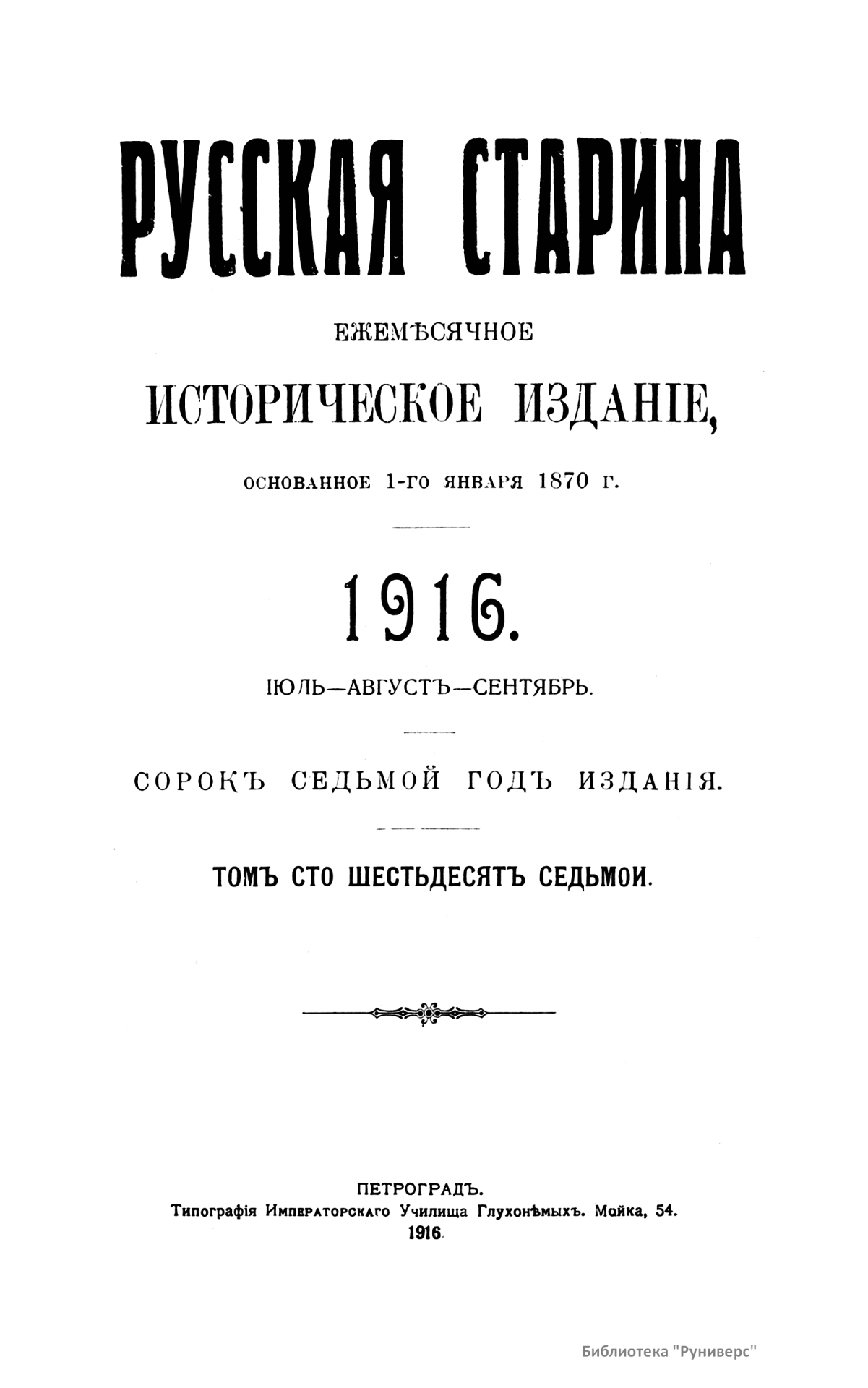Русская старина. Томъ CLXVII. 1916. Выпуски 7-9