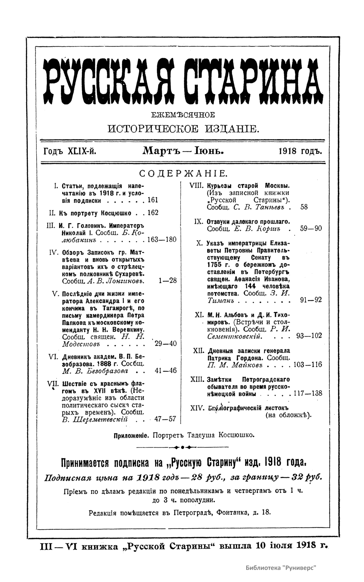 Русская старина. Томъ CLXXIV. 1917. Выпуски 3-6