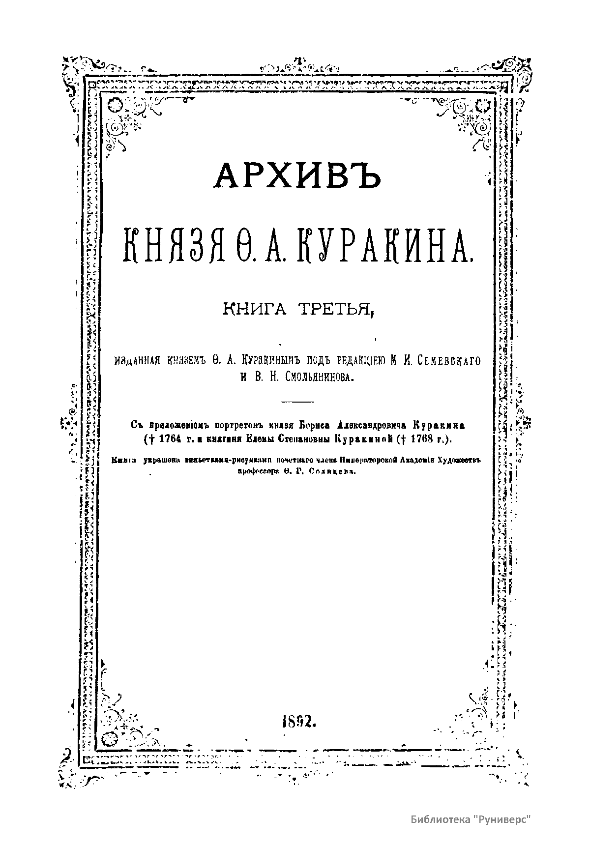 Архив князя Ф.А. Куракина. Книга третья