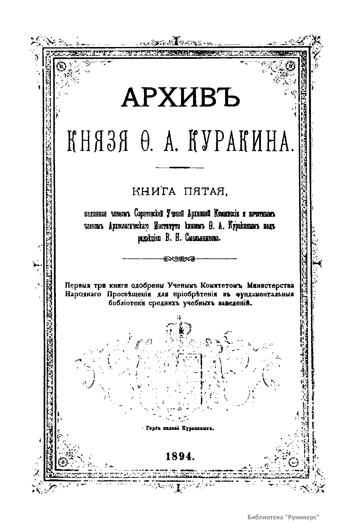 Архивъ князя Ѳ.А. Куракина. Книга пятая