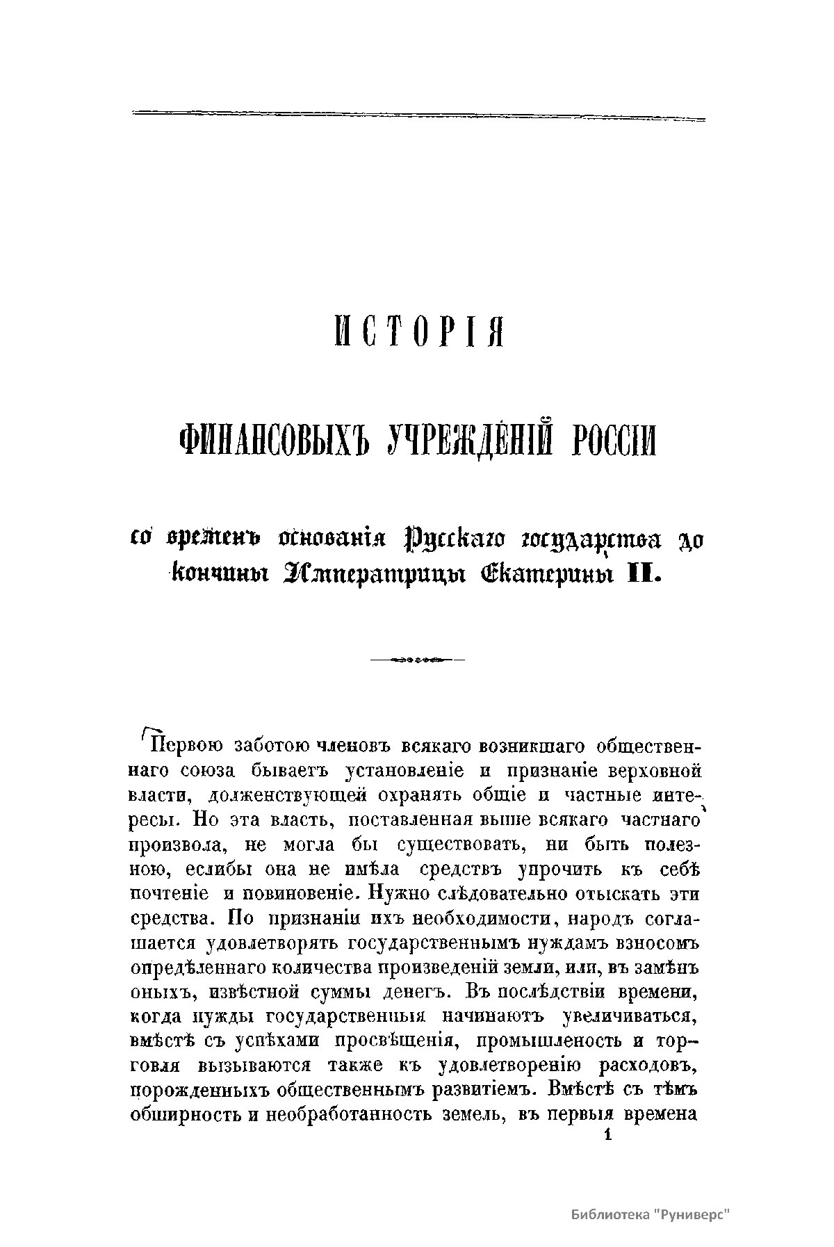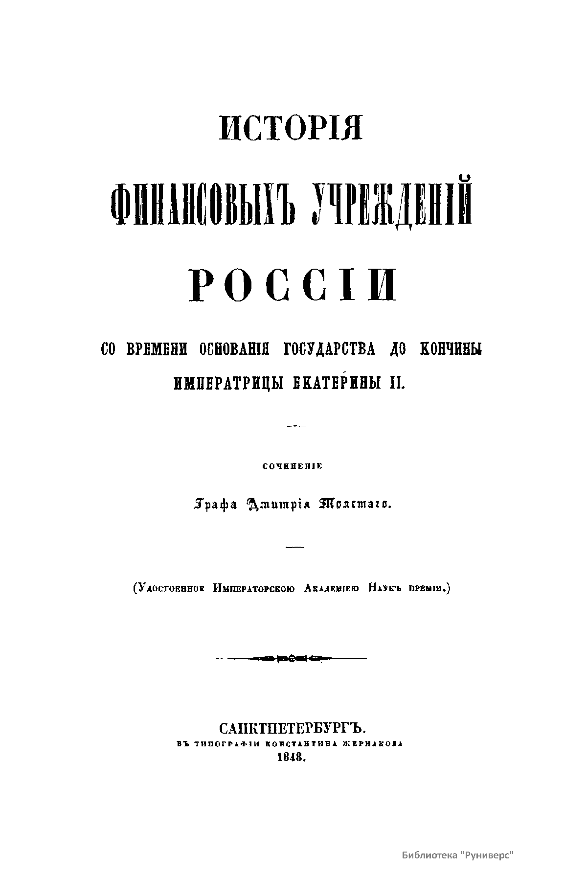 Исторiя финансовыхъ учрежденiй Россiи со времени основанiи государства до кончины Императрицы Екатерины II