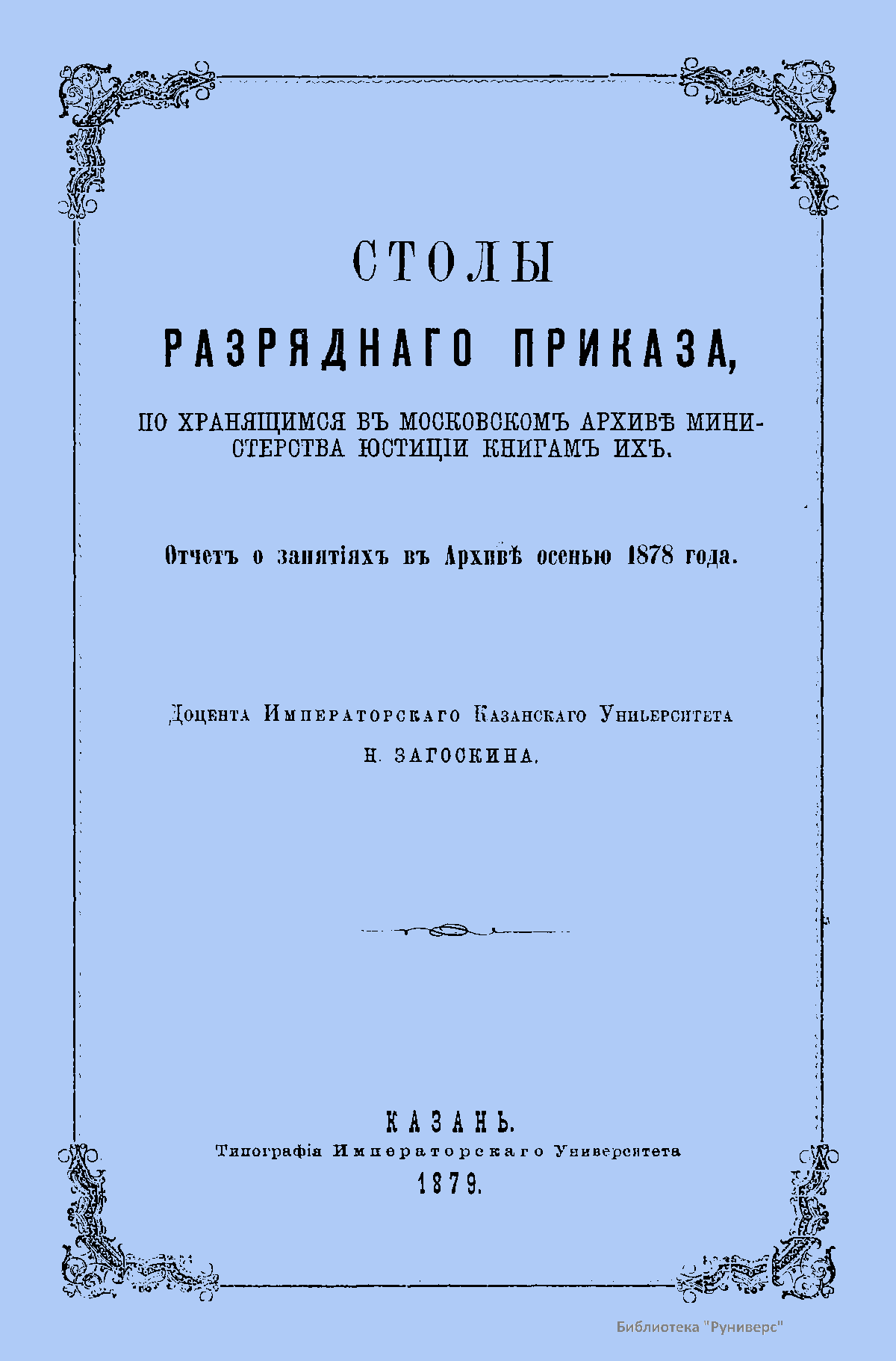 Столы разряднаго приказа, по хранящимся въ московскомъ архивѣ министерства юстицiи книгамъ ихъ. Отчетъ о занятiяхъ въ Архивѣ осенью 1878 года
