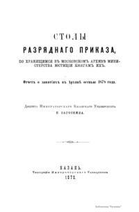 Столы разрядного приказа, по хранящимся в московском архиве министерства юстиции книгам их. Отчет о занятиях в Архиве осенью 1878 года