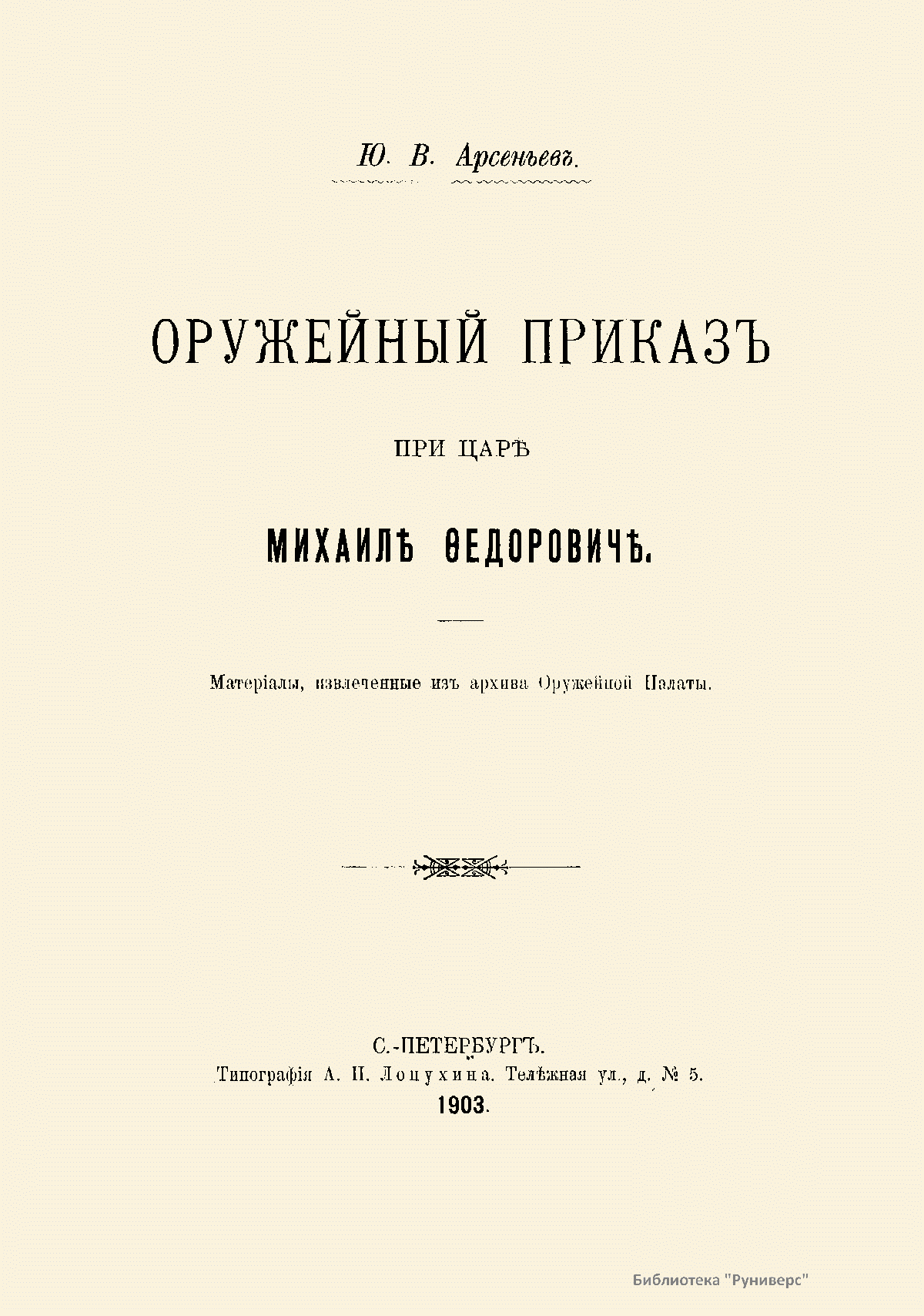 Оружейный приказъ при царѣ Михаилѣ Ѳедоровичѣ
