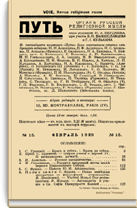 Путь: Орган русской религиозной мысли. №15. Февраль 1929