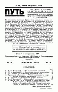 Журнал «Путь» был изданием Религиозно-Философской академии (Париж), его редактором и вдохновителем был