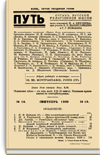 Путь: Орган русской религиозной мысли. №18. Сентябрь 1929