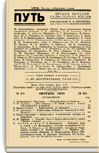 Путь: Орган русской религиозной мысли. №20. Февраль 1930