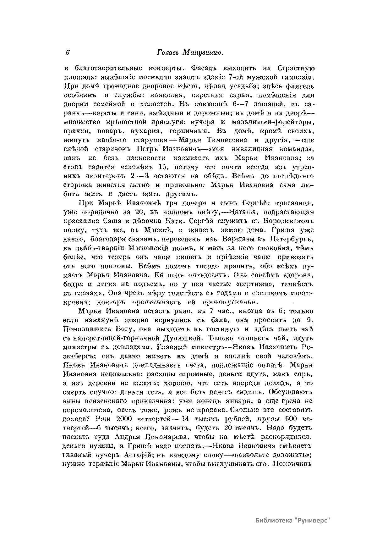 «Голос Минувшего» — журнал истории и истории литературы либерально-народнического направления, издававшийся в Москве с 1913 по 1923 год. Издателем журнала в 1913–1922 годах были известные русские историки, публицисты и общественные деятели С. П. Мельгунов (1880–1956) и В. И. Семевский (1848–1916). В редакционную коллегию также входили А. К. Дживелегов и П. Н. Сакулин. До 1919 «Голос минувшего» выходил ежемесячно, затем нерегулярно, всего было выпущено 65 номеров. В журнале публиковались интереснейшие материалы, посвященные истории литературы и общественных движений в России второй половины XVIII – начала XX веков. Здесь можно найти: статьи по вопросам русской и всеобщей истории, истории литературы, философии, искусства и археологии. В издании представлены: историческая беллетристика, биографии русских и иностранных деятелей, критика и библиография, новости русской и иностранной науки, обзор журналов русских и иностранных, хроника, мемуары, записки, дневники и письма декабристов, видных народовольцев и эсеров, крупных общественных деятелей и царских администраторов, писателей, военачальников и др. Среди авторов: Е. В. Тарле, А. Ф. Кони, А. К. Дживелегов, А. А. Кизеветтер, В. Г. Короленко и др. Стремление сделать журнал интересным для более широкого круга читателей способствовало тому, что в «Голосе Минувшего», хоть и в ограниченном количестве, печатались статьи по истории искусства и помещались иллюстрации: портреты, картины и рисунки, не знакомые или мало знакомые публике. В журнале опубликован целый ряд интересных писем, документов и воспоминаний. Абсолютное большинство текстов никогда не переиздавалось. Журнал снабжен указателями имен за 1913–1922 годы и систематическим указателем содержания.