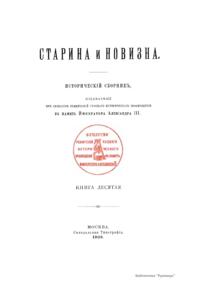 «Старина и новизна» — русский исторический сборник, издававшийся «Обществом ревнителей русского исторического просвещения в память императора Александра III». Сборник выходил в Петербурге в 1897–1904 и в Москве в 1904–1917 годах по мере накопления материала. Руководил изданием сборника граф С. Д. Шереметев (1844–1918) — историк, археолог, председатель «Общества», одного из первых объединений историков монархического направления. Члены общества способствовали изданию документов прошлого, содействуя развитию исторической науки и популяризации интереса к историческим материалам. «Старина и новизна» представляет собой собрание документальных материалов по русской истории и литературе XVII–XIX века. Вместе с Шереметевым в создании сборника участвовали блестящие историки А. П. и Н. П. Барсуковы, С. Ф. Платонов, Л. П. Майков и др.