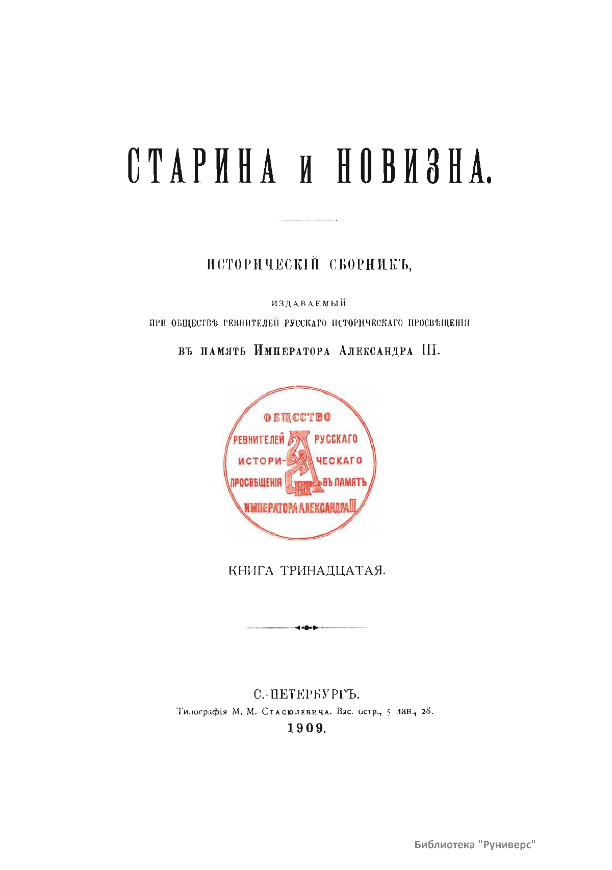 Старина и новизна. Книга тринадцатая