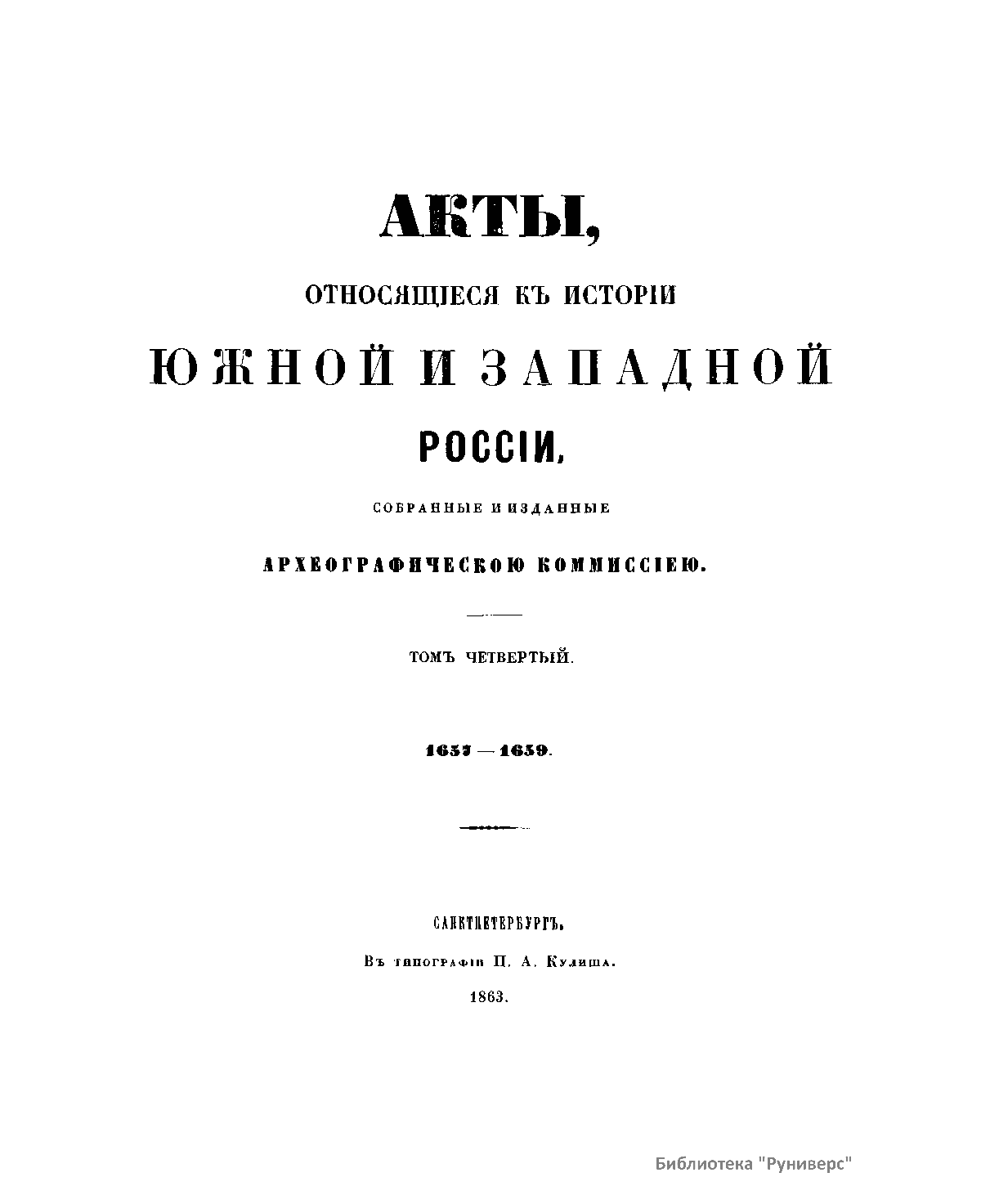 Акты, относящиеся к истории южной и западной России. Том четвертый. 1657-1659