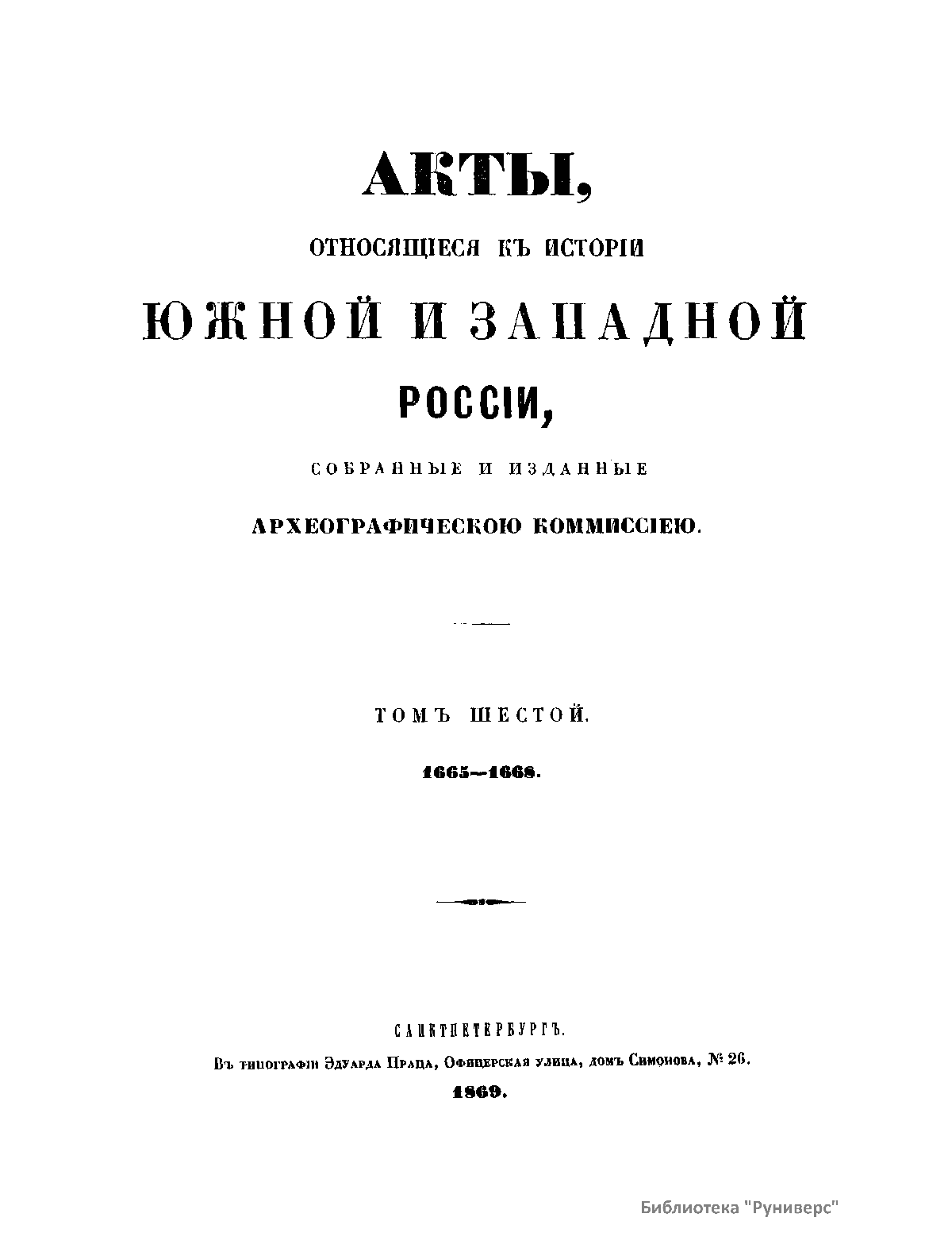 Акты, относящиеся к истории южной и западной России. Том шестой. 1665-1668