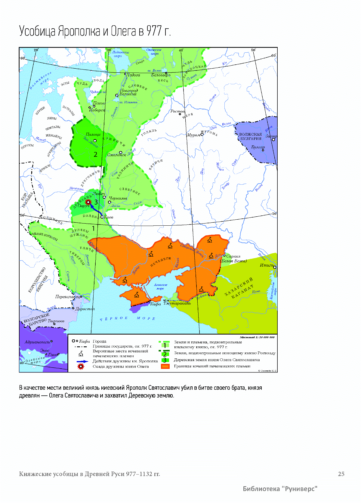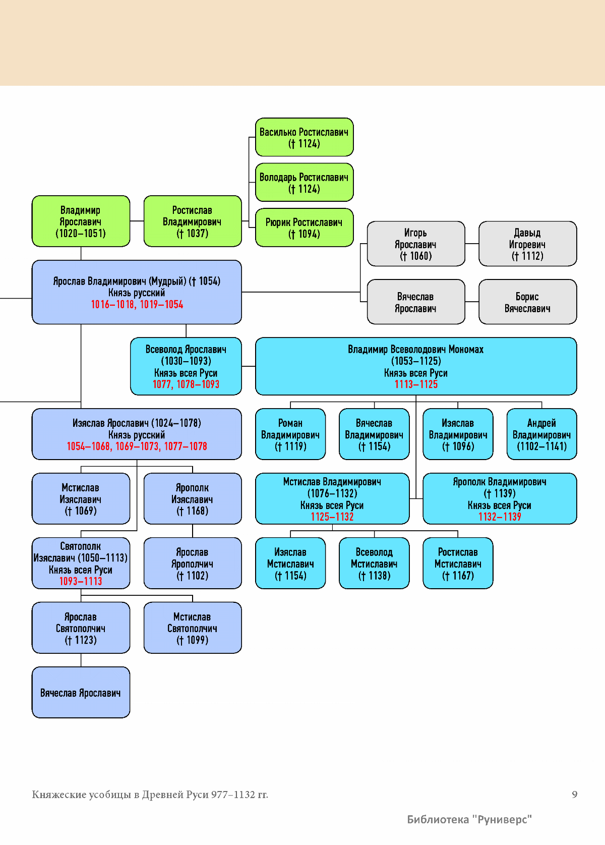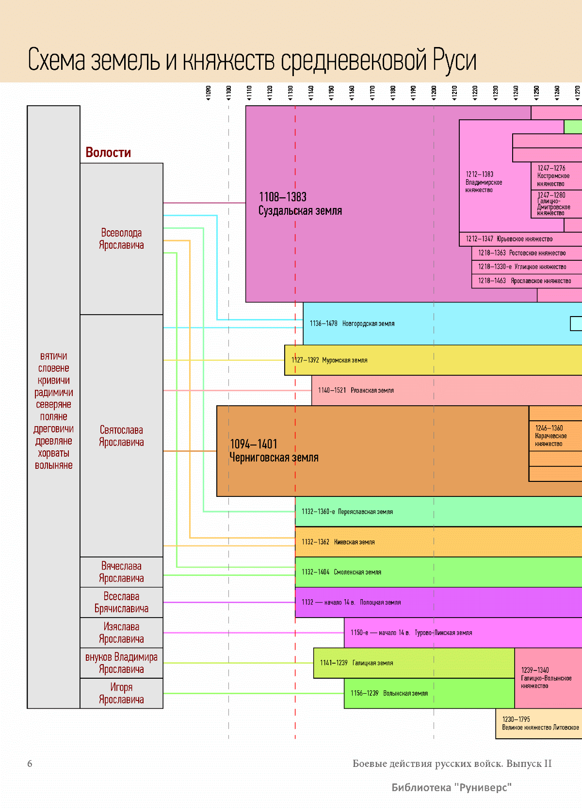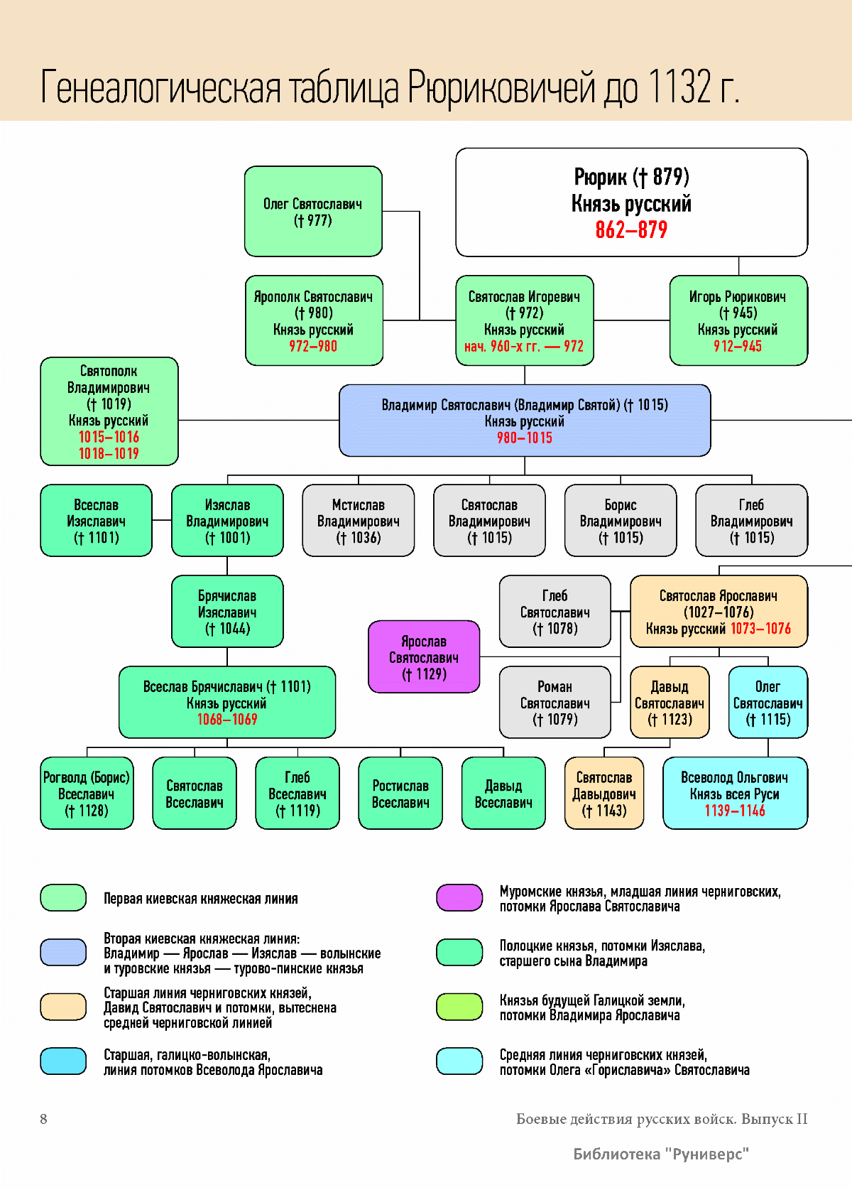 История Древней Руси наводнена упоминаниями о военных столкновениях и вооруженных конфликтах. Среди них особое место занимает политическая борьба различных группировок за сферы влияния и контроля. Закрепление власти за родом Рюриковичей не привело к мирному существованию страны: между многочисленными потомками легендарного основателя начались вооруженные конфликты. Такие столкновения принято называть междоусобными войнами, междоусобицами или просто усобицами. В книге впервые рассмотрены причины, ход и последствия 62-х вооруженных конфликтов X-XII столетий (977-1132 гг.) и представлена их уникальная визуализация в виде карт и генеалогических схем.