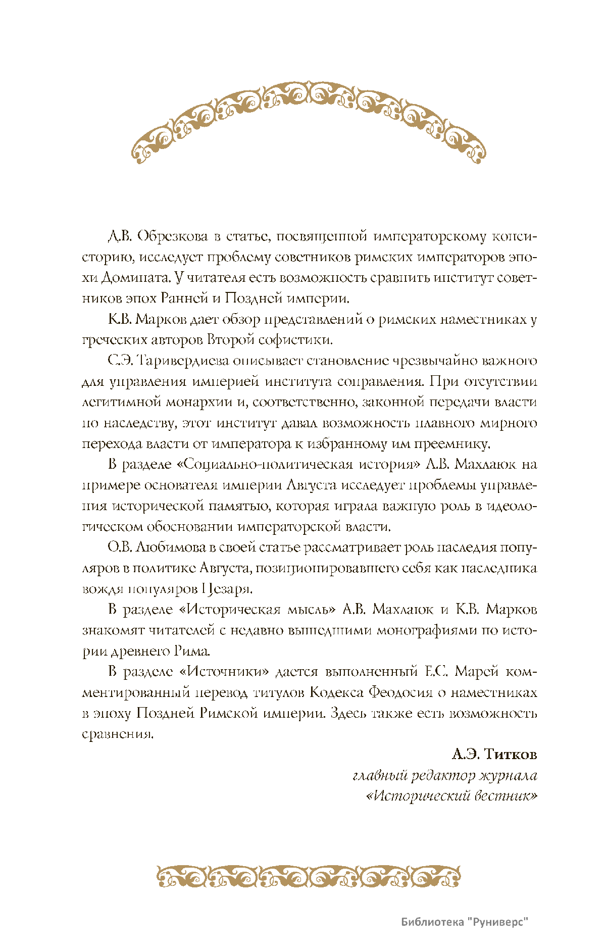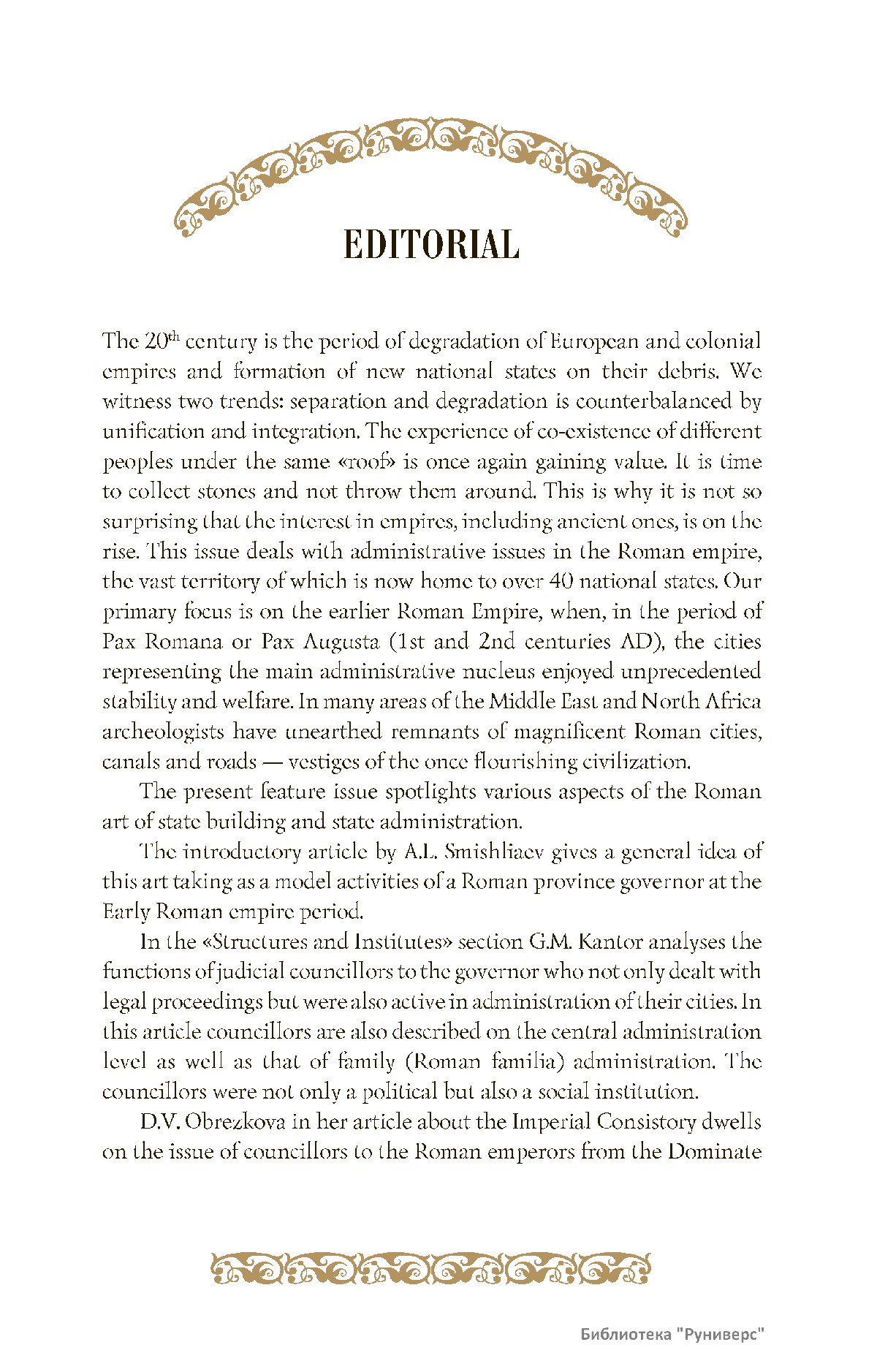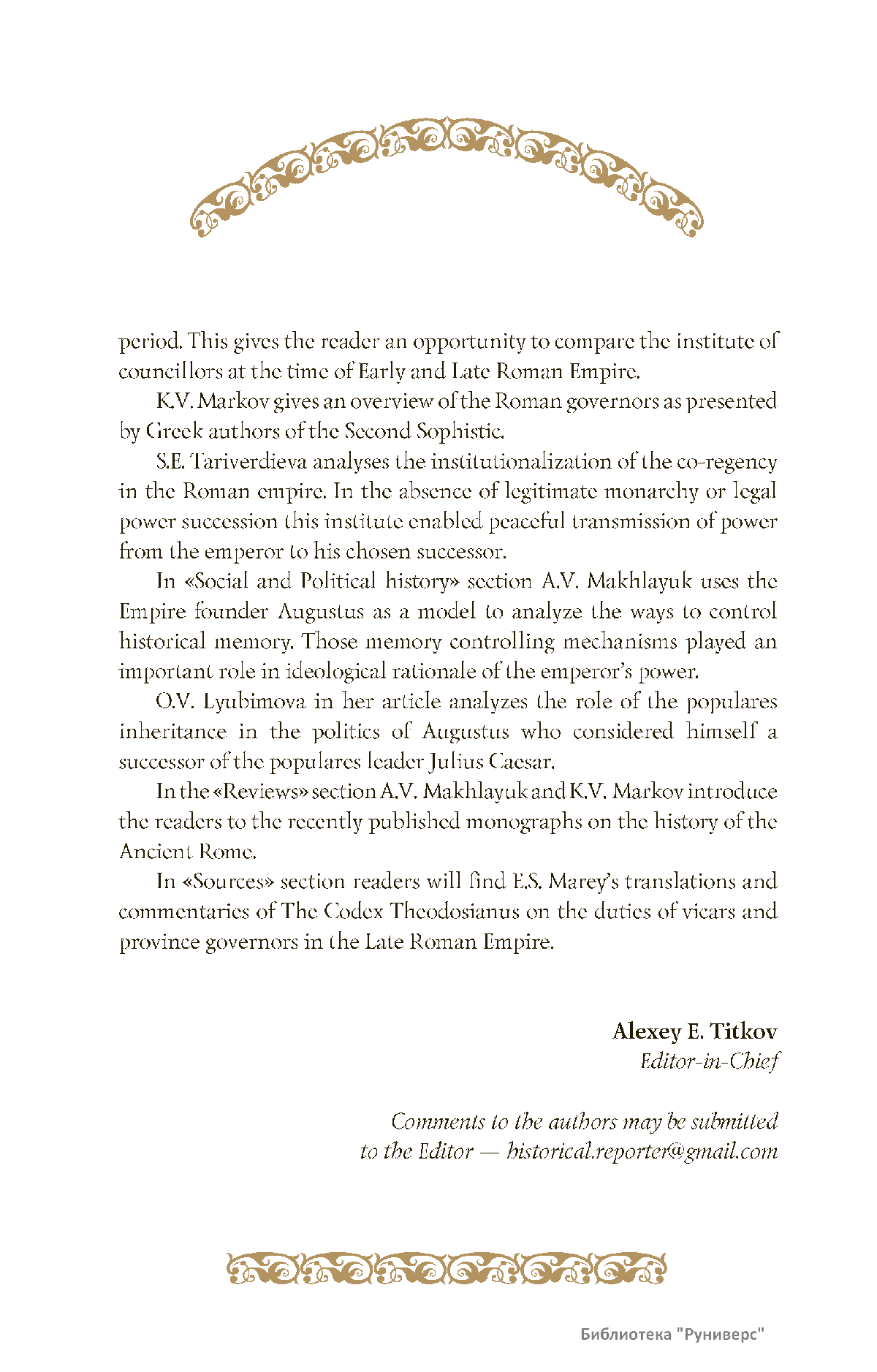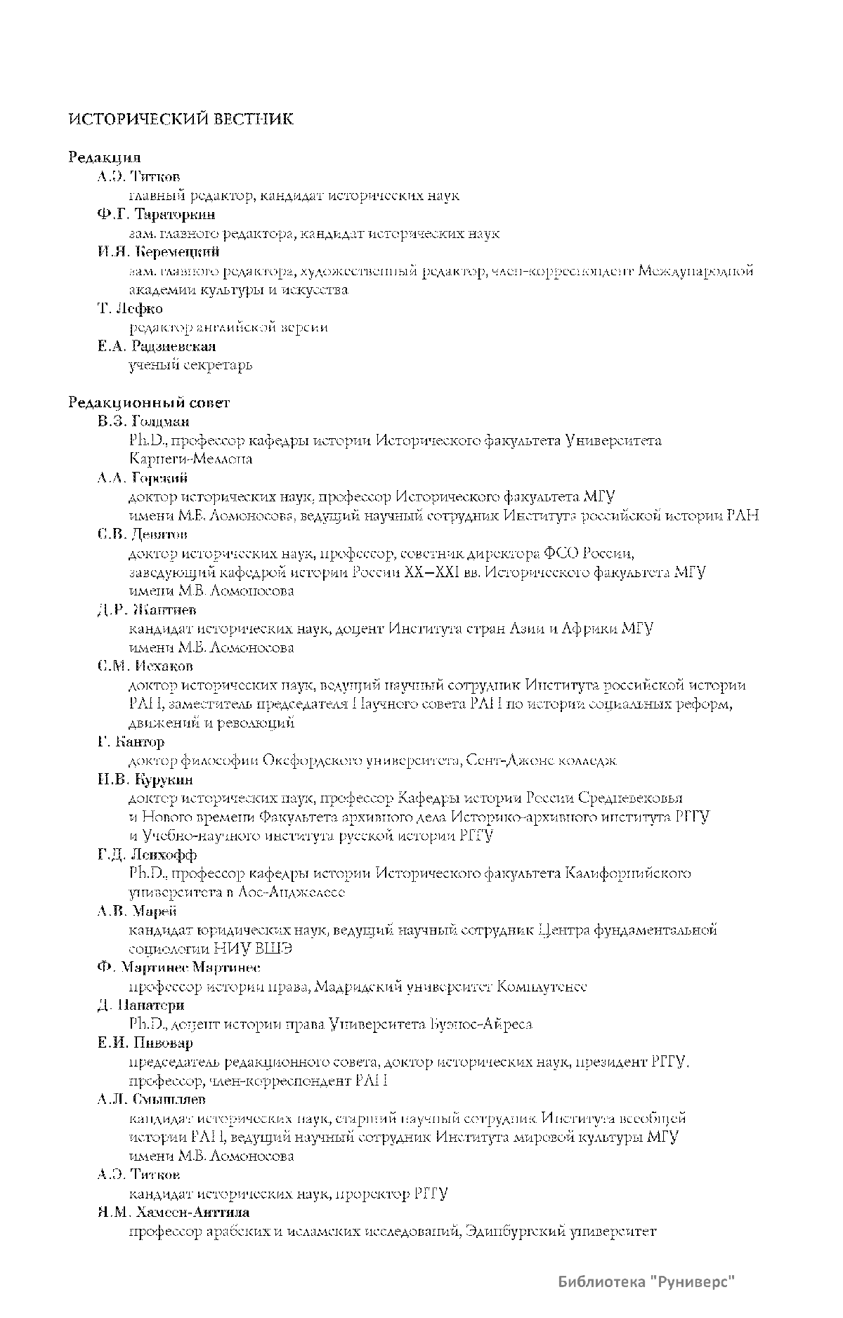 Дорогие коллеги, мы представляем вам первый номер «Исторического вестника», который одновременно обозначается 148-м томом, тем самым продолжая дореволюционное издание. Однако, перешагивая почти сто лет, мы понимаем, что реалии XXI века определяют и новое содержание журнала. История сегодня во многом актуализирована политикой. Именно геополитическая ситуация в мире, возвращающая нас к вопросам сохранения существующих границ, национальных и культурных ценностей, моральных и религиозных принципов, формирует еще одно измерение — проблему аутентичного исторического бытования народов и государств. С одной стороны, это вопрос географических ареалов государственных образований, с другой — тема, связанная с соприкосновением, взаимодействием процессов, культур и традиций. Во многом мы стоим и перед важнейшей этической проблемой. Мы должны не только вежливо и настойчиво указывать нашим уважаемым соседям на свои исторические права, но и сами уходить от искушения искусственного удревнения собственной истории или присвоения чужой. И здесь на сцену выходит его величество Исторический Научный Факт. Он и есть главный цензор и законодатель. На этом незыблемом основании будет строиться редакционная и научная работа «Исторического вестника».