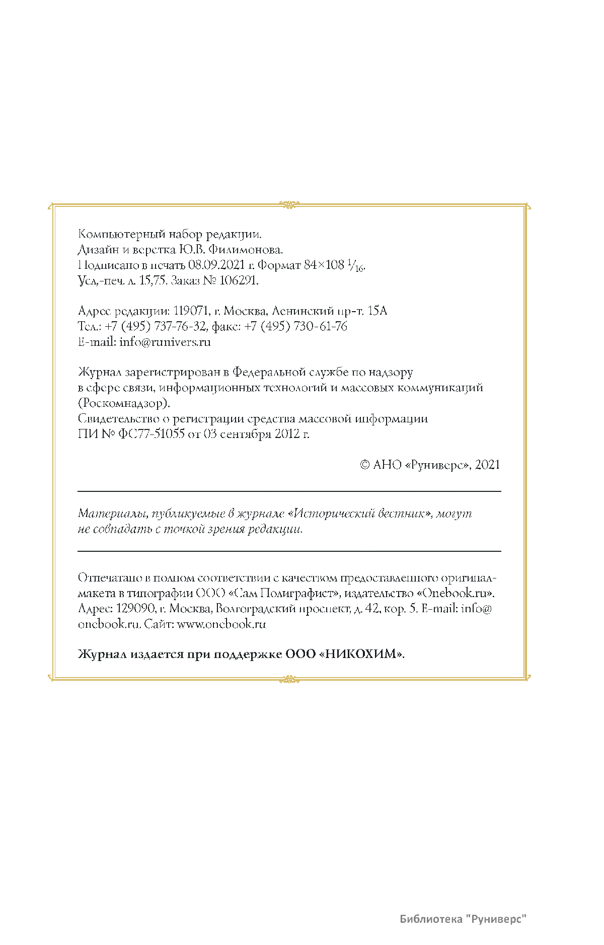 Исторический вестник. Историко-литературный журнал