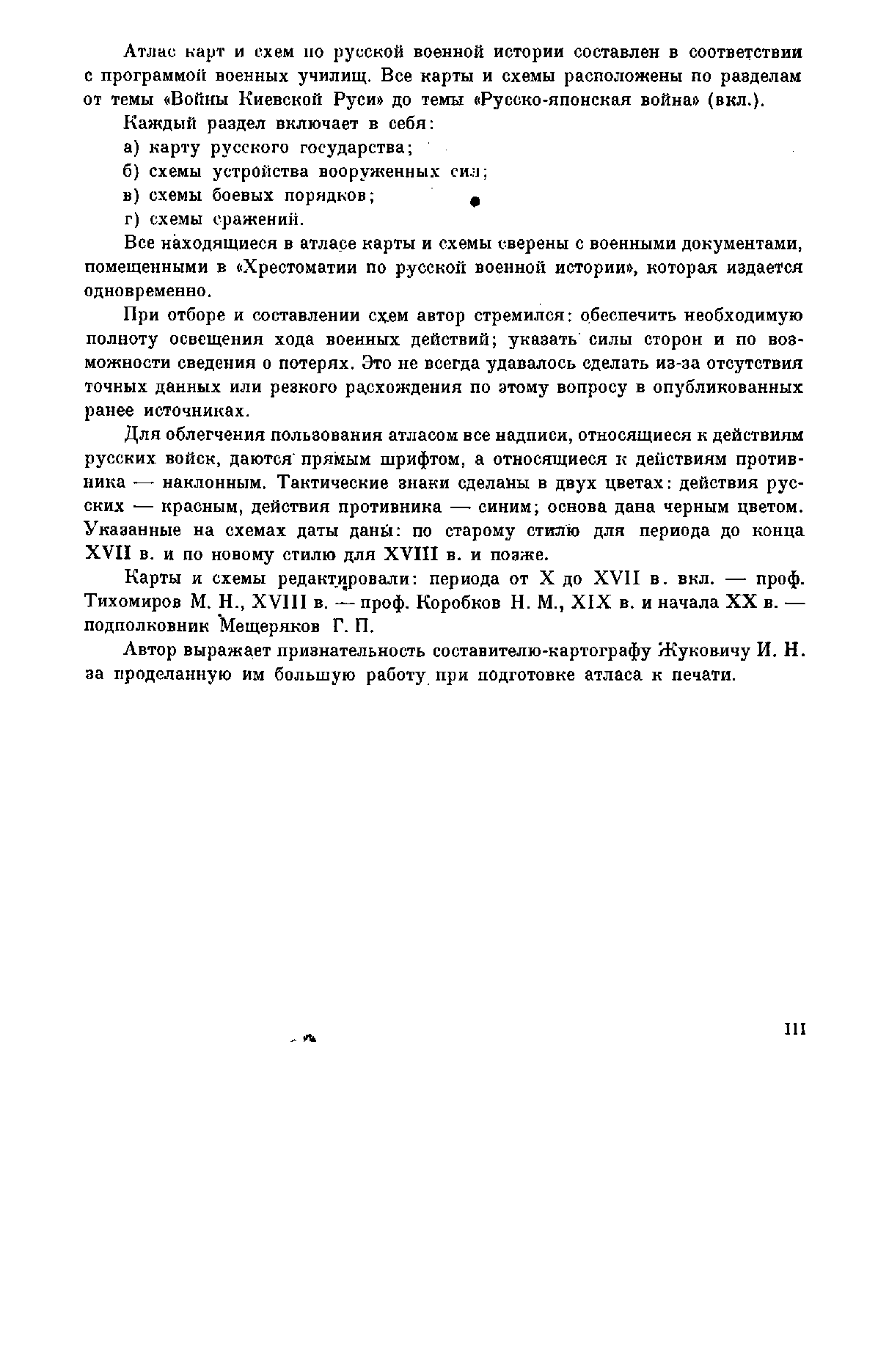 Издание адресовано слушателям военных училищ. Представлены карты и схемы от войн Киевской Руси до Русско-японской войны. Каждый раздел включает: карту русского государства; схемы устройства вооруженных сил; схемы боевых порядков; схемы сражений. Автор стремился обеспечить необходимую полноту освещения хода военных действий и указать силы сторон, а по возможности – сведения о потерях.