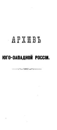 В серии «Архив Юго-Западной России» были напечатаны документы Киевского архива. Издание было предпринято Киевской археографической комиссией с 1859 по 1911 год. Всего вышло 34 тома.