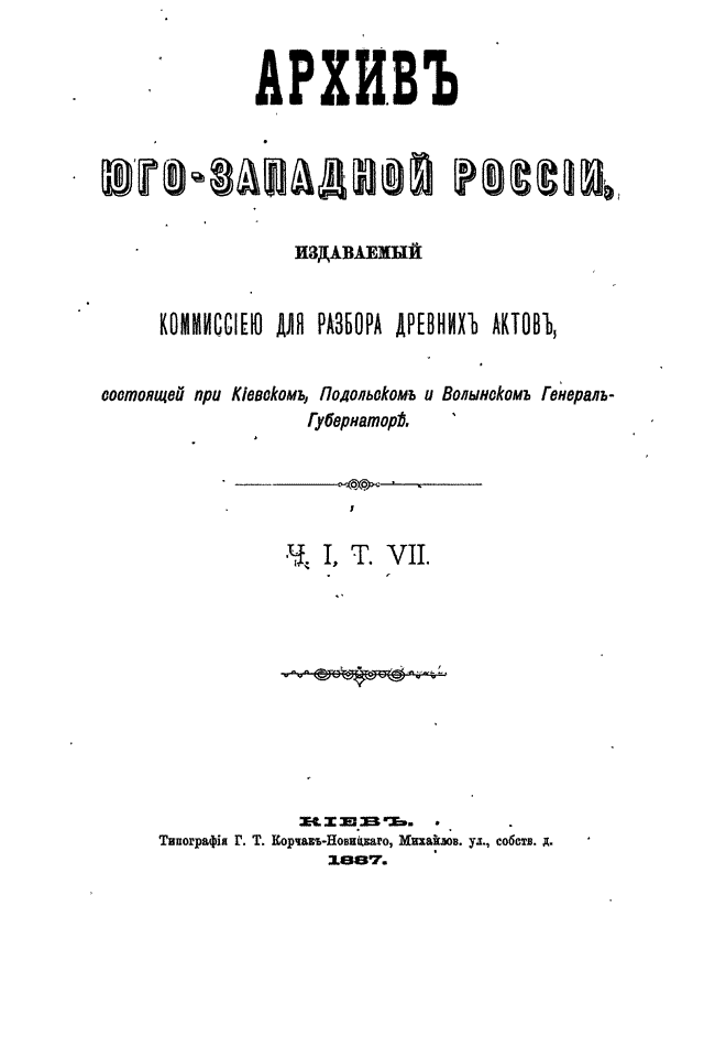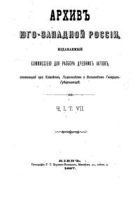 В серии «Архив Юго-Западной России» были напечатаны документы Киевского архива. Издание было предпринято Киевской археографической комиссией с 1859 по 1911 год. Всего вышло 34 тома.