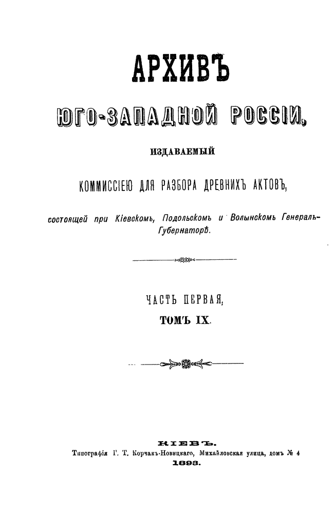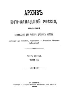 В серии «Архив Юго-Западной России» были напечатаны документы Киевского архива. Издание было предпринято Киевской археографической комиссией с 1859 по 1911 год. Всего вышло 34 тома.