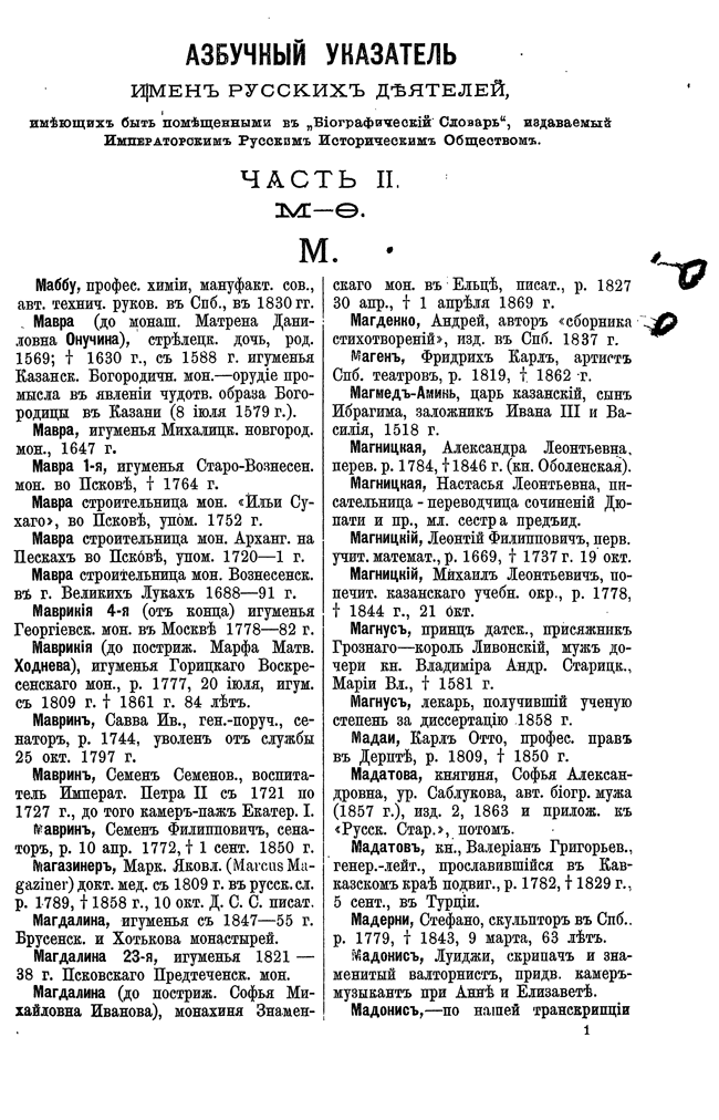 Азбучный указатель имен русских деятелей для «Русского биографического словаря». Часть вторая.