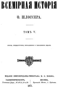 «Всемирная история» Шлоссера сыграла заметную роль в истории развития общественной мысли в России. В переводе на русский язык и популяризации его трудов принимал деятельное участие Н. Г. Чернышевский