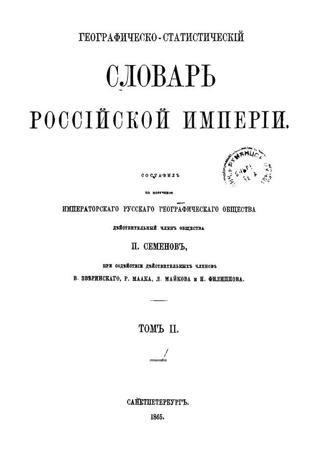 Знаменитый путешественник и географ, статистик и геолог, знаток живописи и ботаник, историко-географ и энтомолог – научная деятельность Петра Петровича Семёнова-Тян-Шанского отличалась замечательной разнообразностью. Но одно направление следует подчеркнуть особо. Благодаря Семёнову был составлен обширный труд по географическому описанию России. Такого словаря не знала тогда ни одна из западноевропейских стран. Пятитомный географическо-статистический словарь издавался с 1863-го по 1885 год. Здесь тщательно собраны все имевшиеся тогда сведения о русских реках, озерах, морях, горных хребтах, населенных пунктах, губерниях, уездах. «Наша слава есть слава русской земли», – с гордостью говорил ученый о трудах и подвигах русских исследователей.