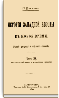 Первые тома вышли в начале девяностых годов 19 века и, посвященные- один «переходу от средних веков к новому времени», другой — «реформации и политической жизни в XVI и XVII вв.», третий — «XVIII веку и революции», — возникли из читанных им общих курсов новой истории, имевших своей целью выяснить значение двух главных переворотов в жизни европейского Запада за последние четыре века, т.е., реформации и революции — в связи с общим характером новой истории с её отличием от средневековой. Однако, позднее, Кареев решился раздвинуть границы первых задач и довести повествание до современнго ему положения дел.