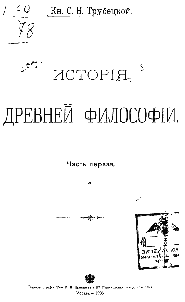 С.Н. Трубецкой. Собр. соч. М., 1910. Т. 3. С. 2