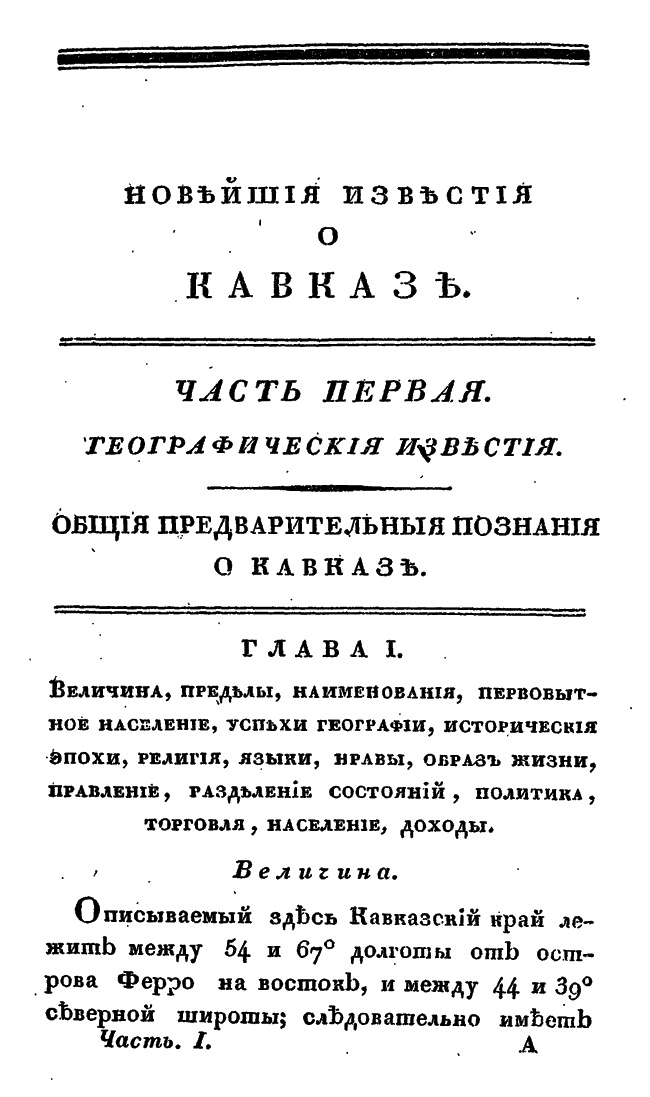В основу книги легли сведения малодоступных для современного читателя источников и архивные материалы Коллегии иностранных дел. Здесь можно ознакомиться с рядом конкретных наблюдений и выводов самого автора (очевидца событий конца XVIII – XIX вв.), не потерявших своей актуальности и сегодня. Первая часть книги содержит материалы географического и этнографического характера; вторая рассказывает о политических взаимоотношениях России с Кавказом, Ираном и Турцией с середины XVI до начала XIX века.
