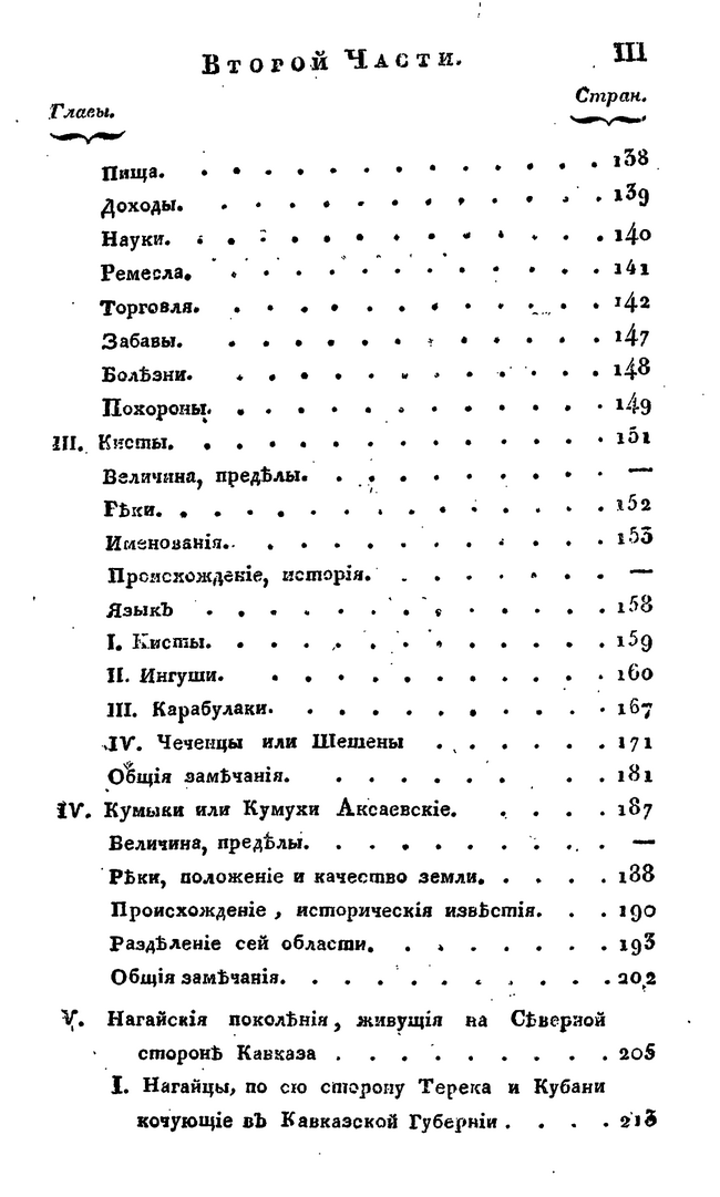 Книга состоит из двух частей. Первая из них содержит материалы географического и этнографического характера; вторая рассказывает о политических взаимоотношениях России с Кавказом, Ираном и Турцией с середины XVI в. до начала XIX в.