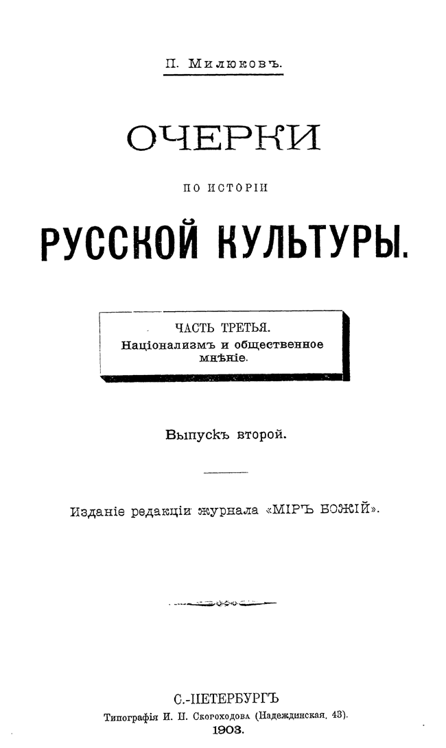 Очерки по истории русской культуры. Часть 3. Выпуск 2. Национализм и общественное мнение.