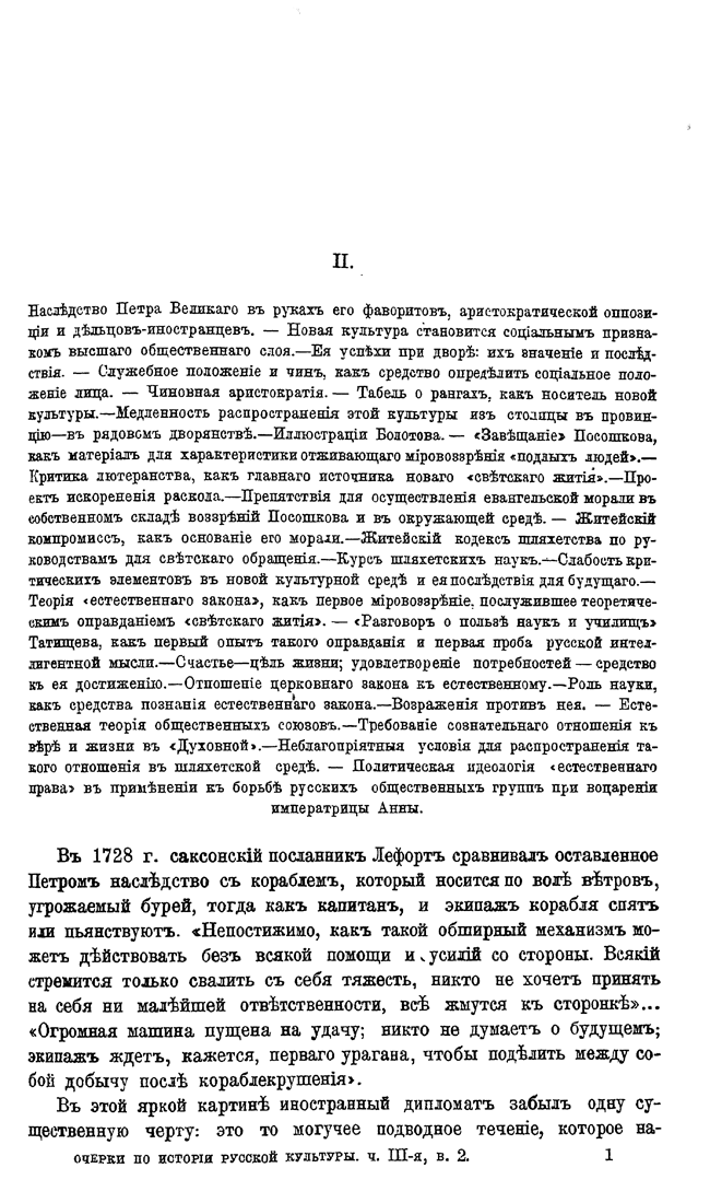 Первая часть исследования знакомит нас «с тем историческим зданием, в котором провел свою жизнь русский народ». Здесь изложены «общие понятия» об истории, её задачах и методах научного познания, определены теоретические подходы автора к анализу исторического материала, а также представлены очерки о населении, экономическом, государственном и социальном строе.