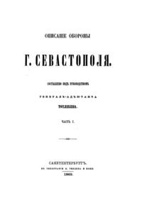 Полный обзор средств воюющих держав, полуострова Крыма, в особенности театра военных действий, изложенный по дням ход обороны и атаки, действия противников, а также распоряжения относительно убыли и усиления крымской армии, продовольствия войск и попечения больных и раненных, планы и чертежи.