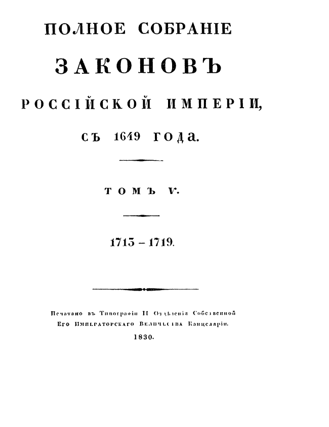 Полное собрание законов Российской Империи. Собрание Первое. Том V