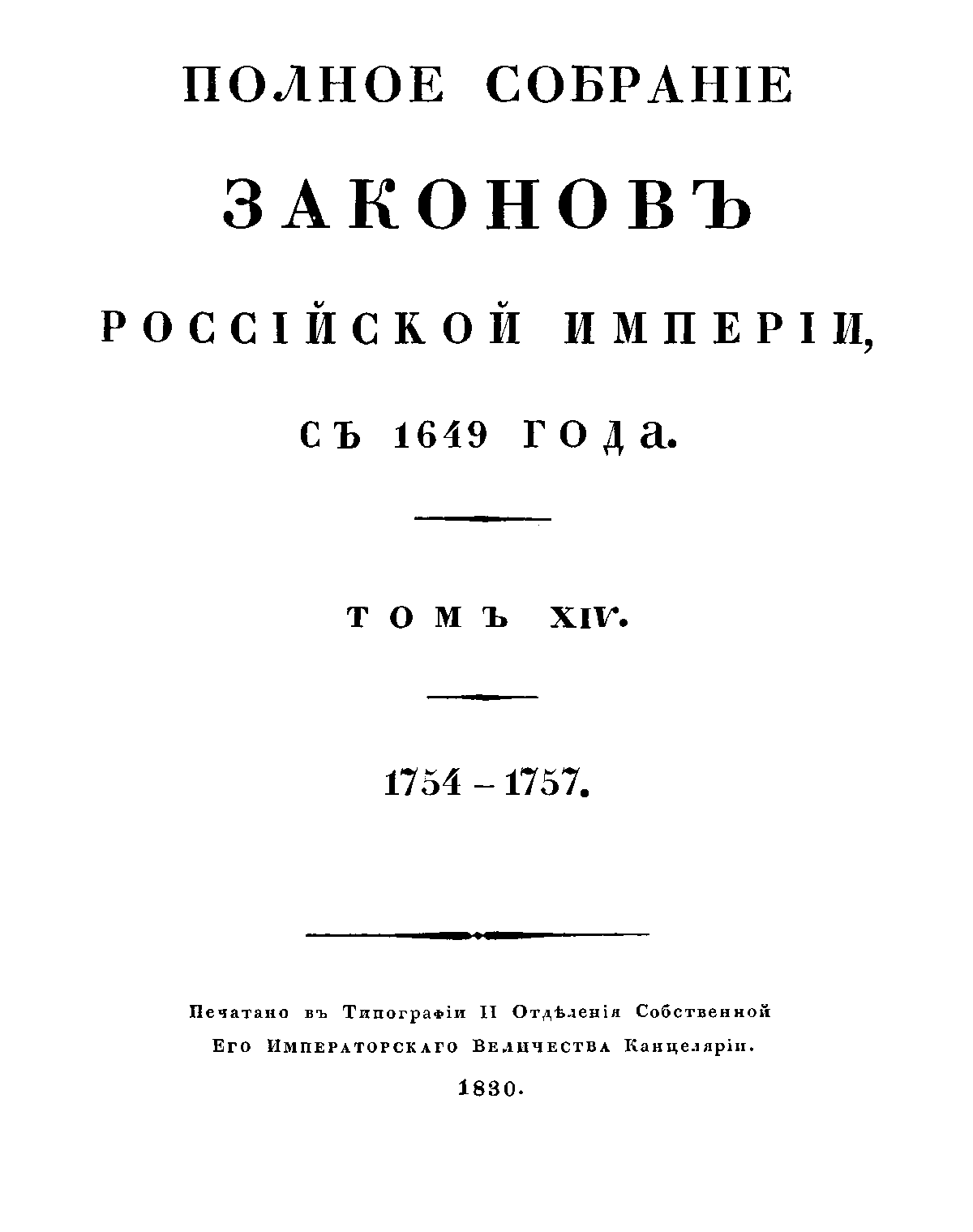 Полное собрание законов Российской Империи. Собрание Первое. Том XIV