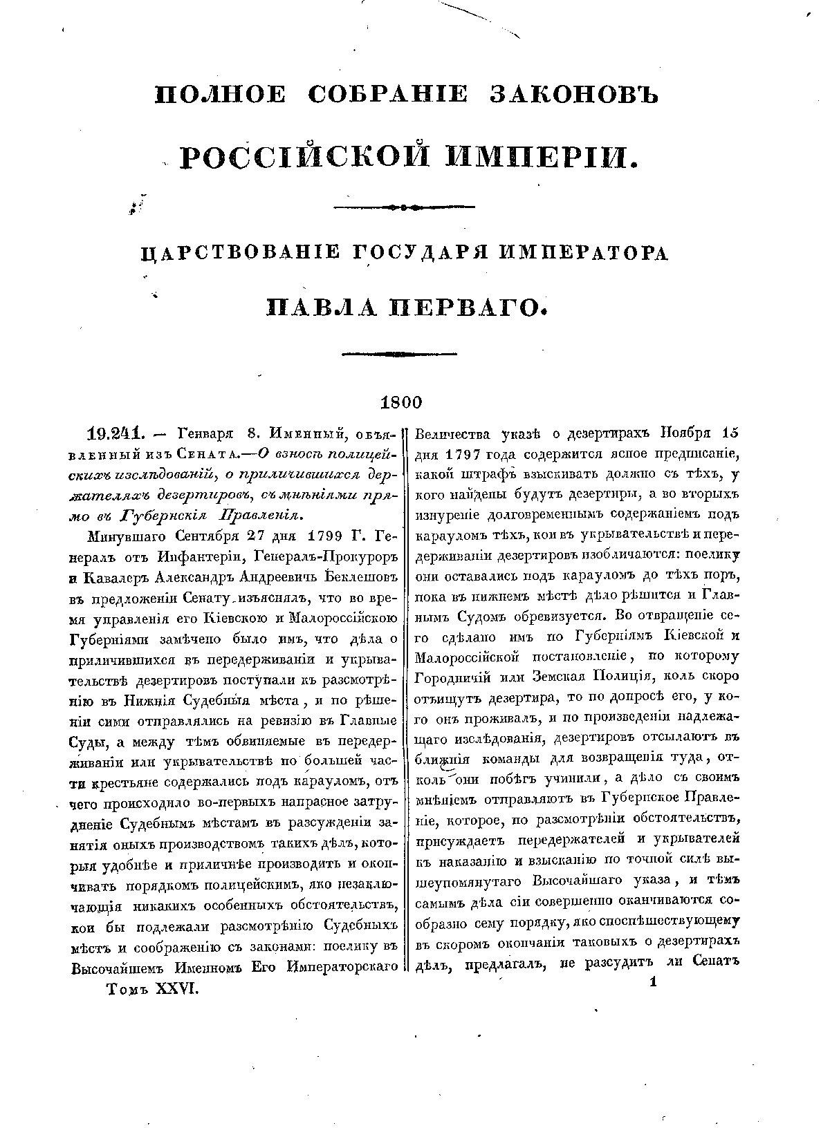 Полное собрание законов Российской Империи. Собрание Первое. Том XXVI