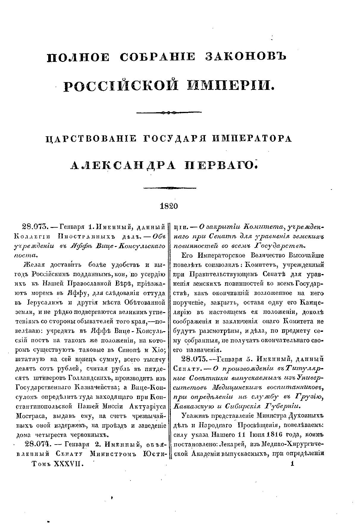 Полное собрание законов Российской Империи. Собрание Первое. Том XXXVII