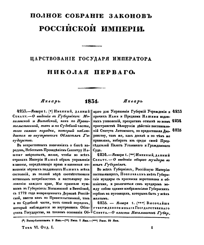 Полное собрание законов Российской Империи. Собрание Второе. Том VI. Отделение 1