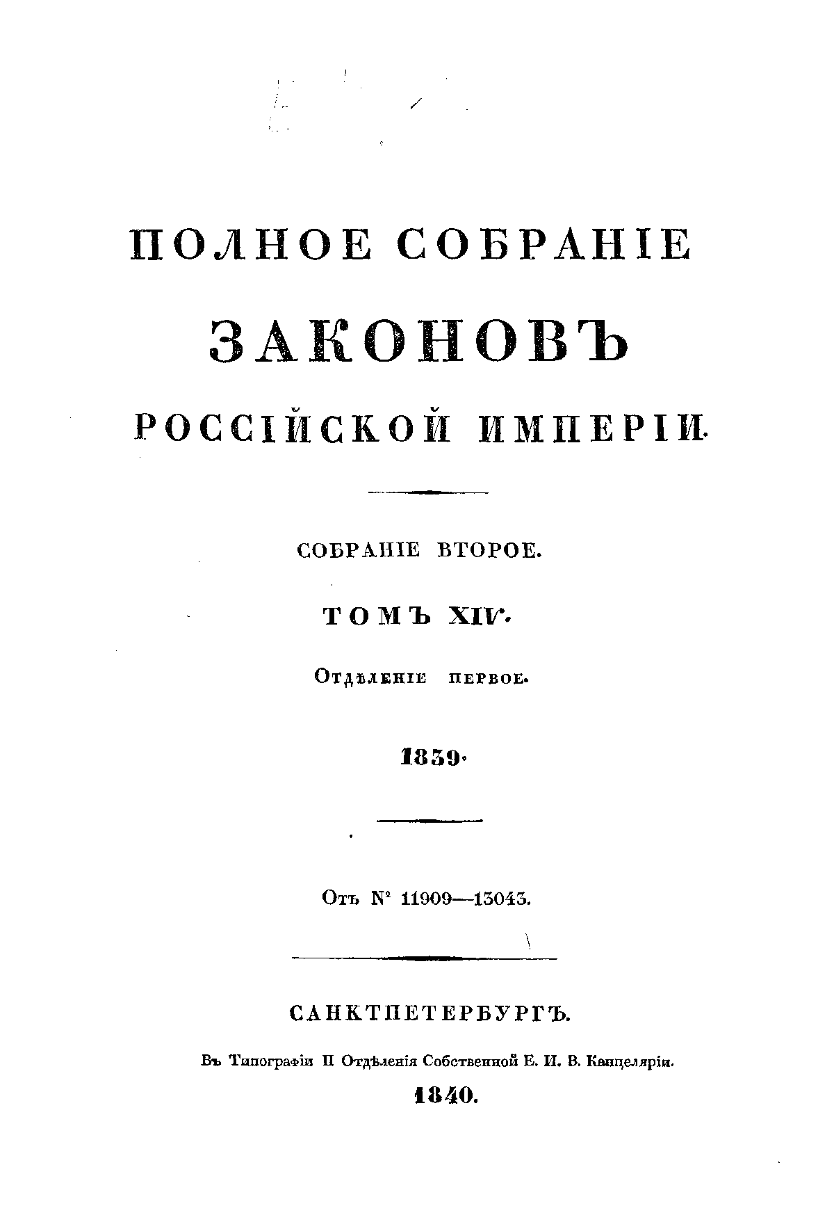 Полное собрание законов Российской Империи. Собрание Второе. Том XIV. Отделение 1
