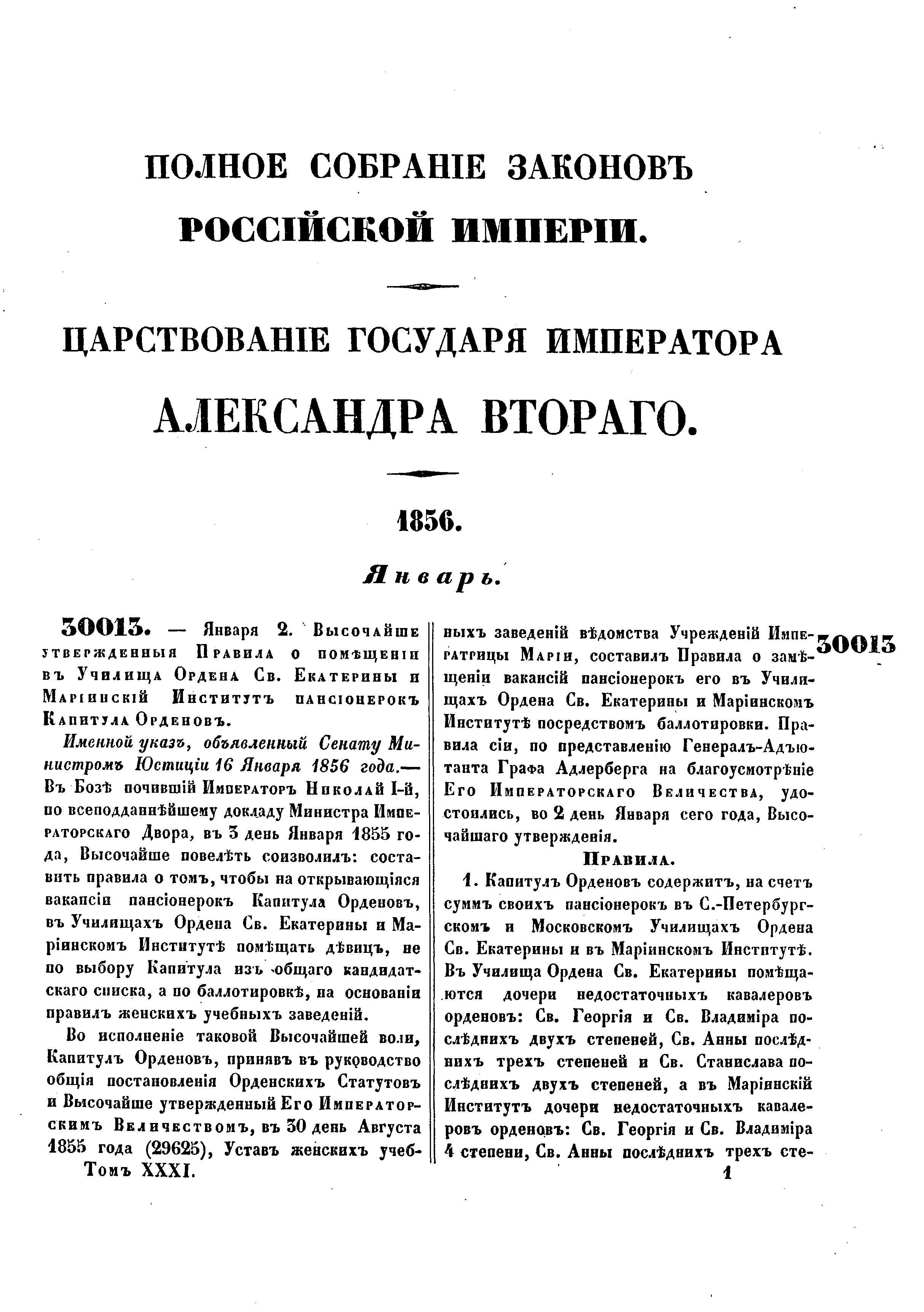 Полное собрание законов Российской Империи. Собрание Второе. Том XXXI. Отделение 1
