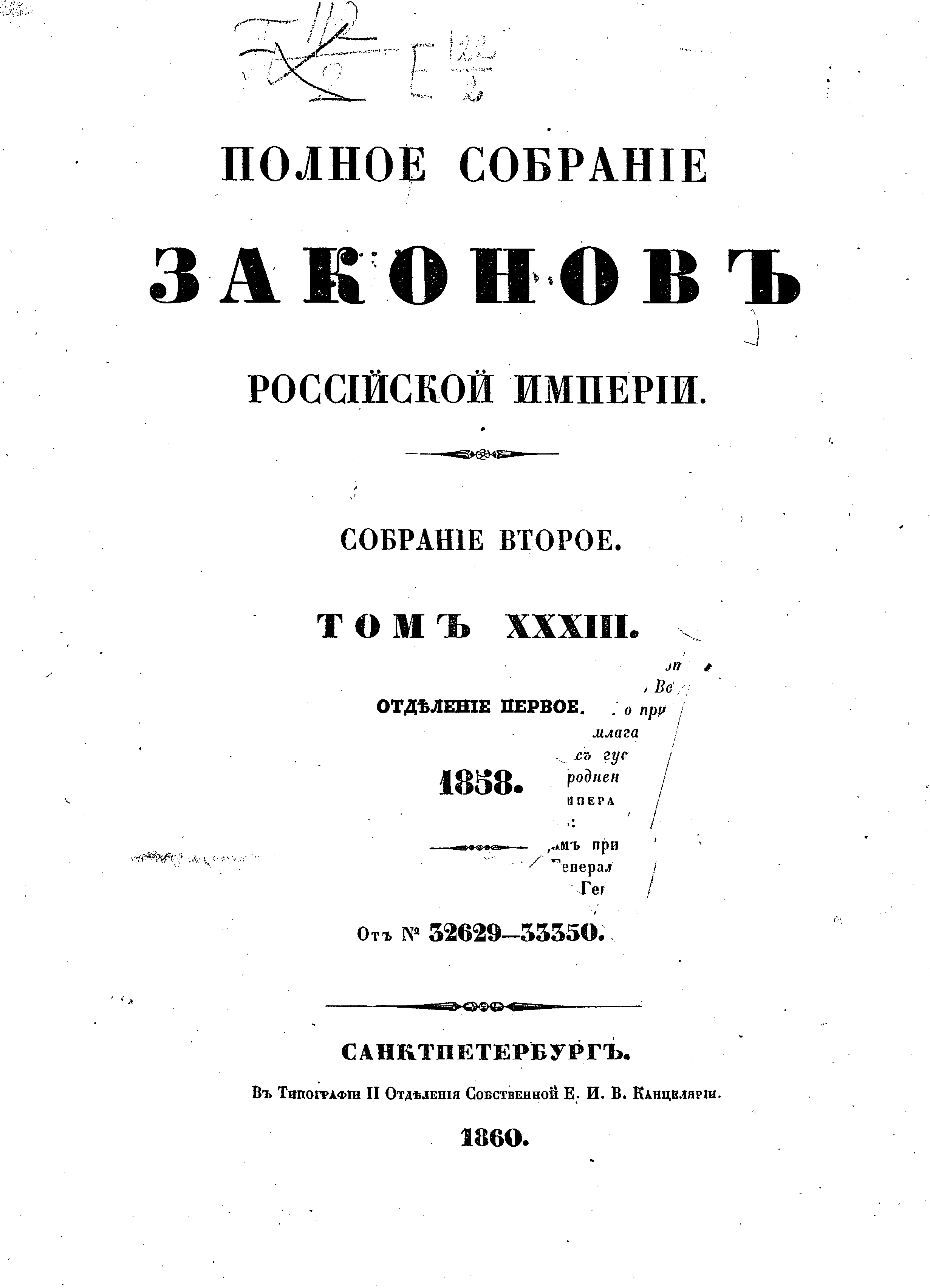 Полное собрание законов Российской Империи. Собрание Второе. Том XXXIII. Отделение 1