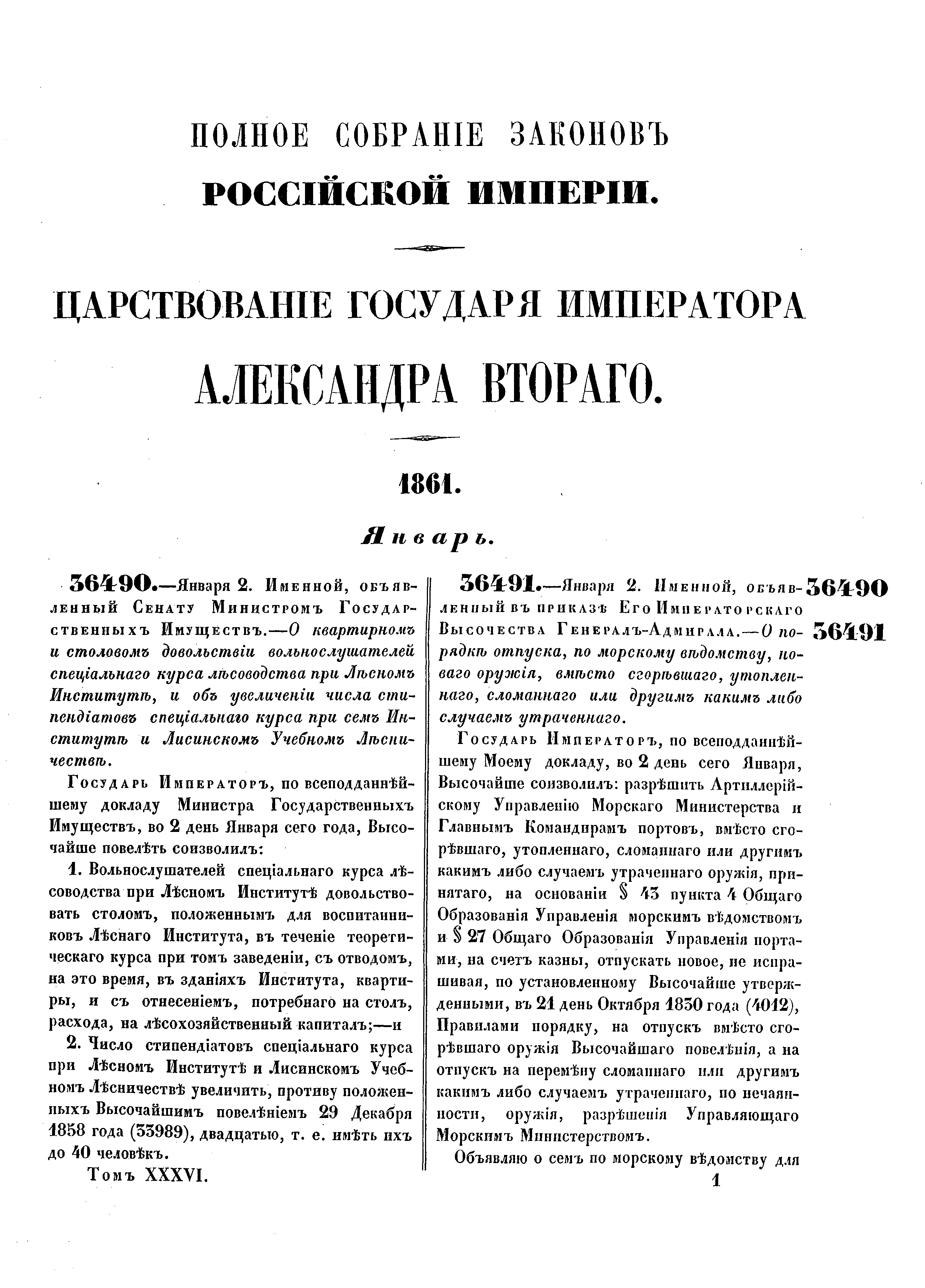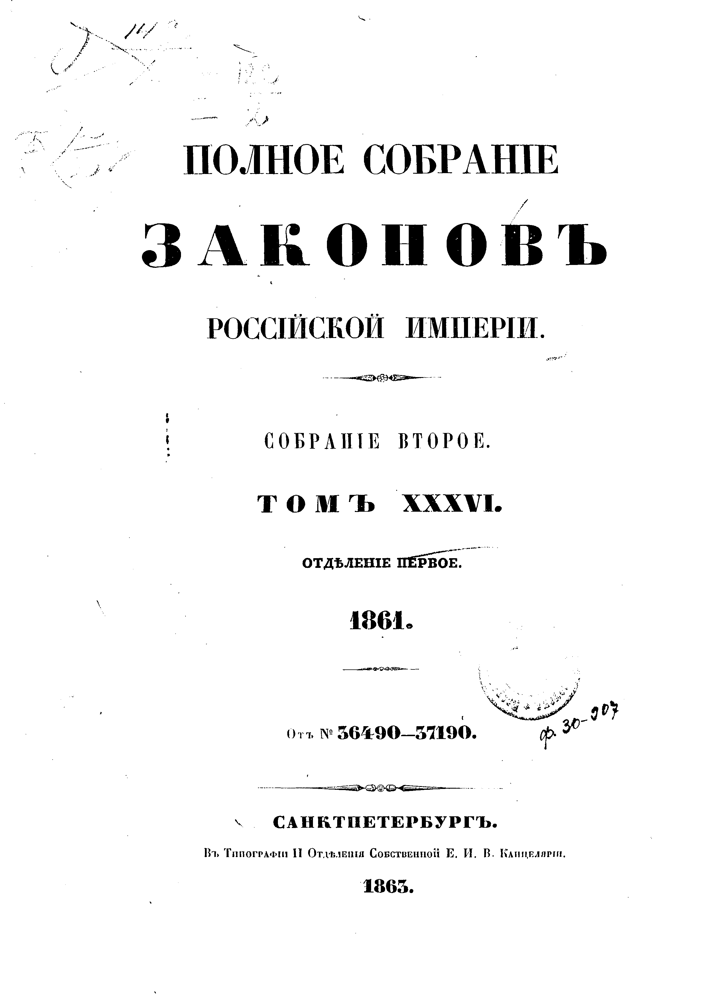 Полное собрание законов Российской Империи. Собрание Второе. Том XXXVI. Отделение 1