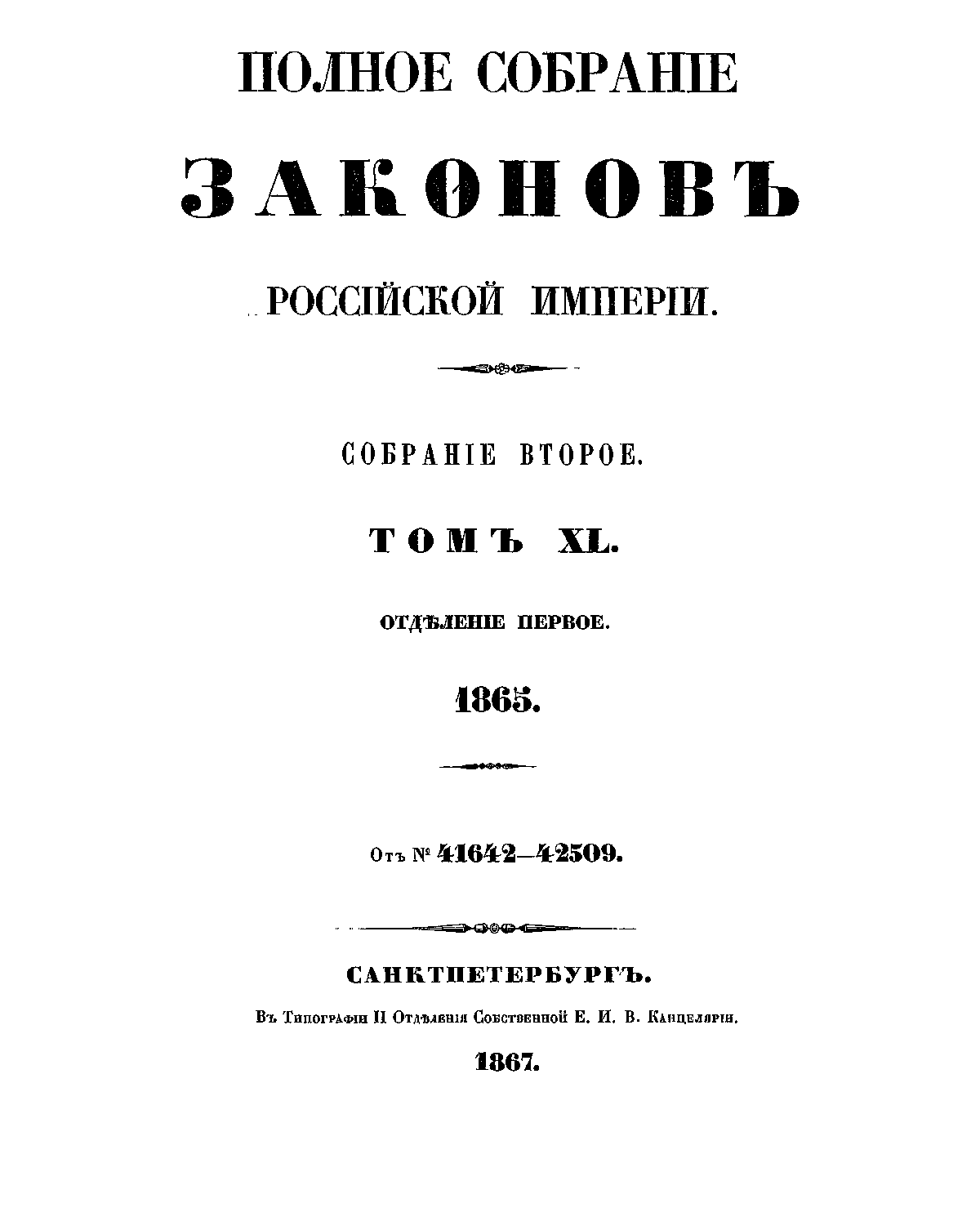 Полное собрание законов Российской Империи. Собрание Второе. Том XL Отделение 1