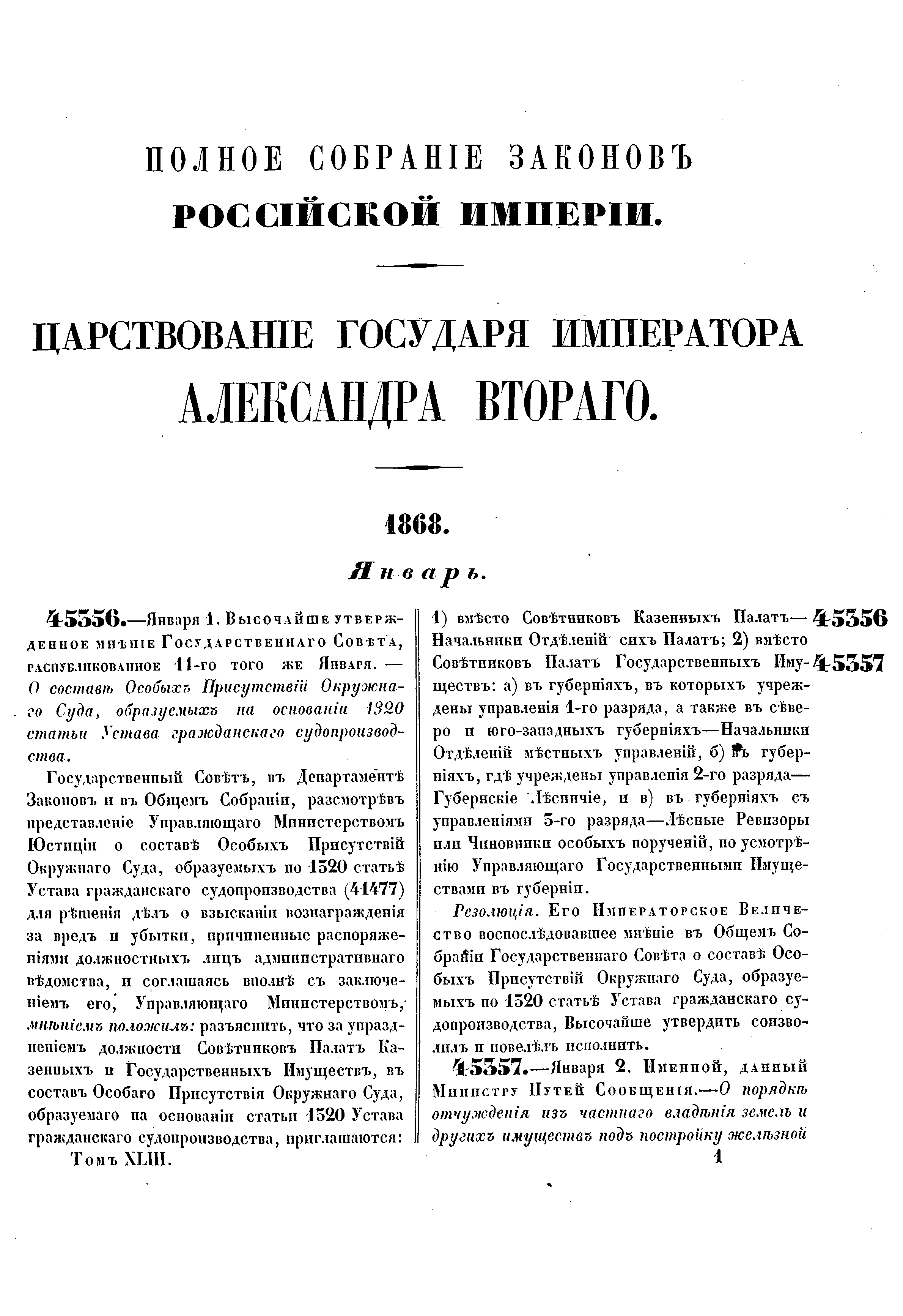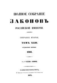 Полное собрание законов Российской Империи. Собрание Второе. Том XLIII. Отделение 1