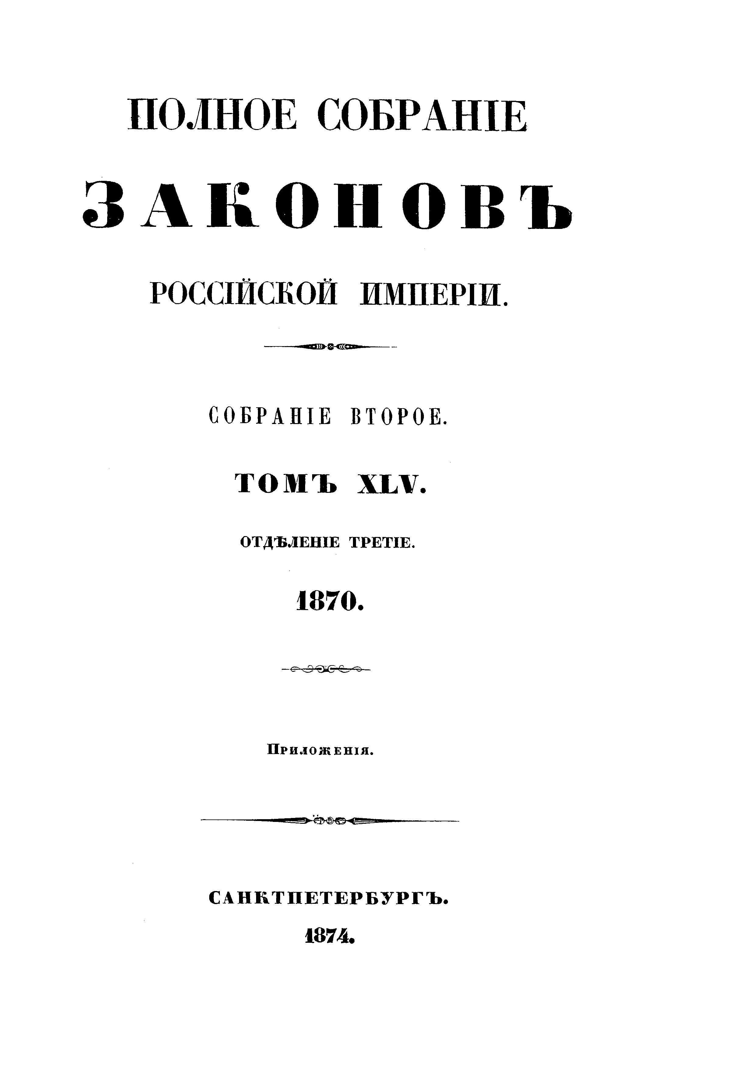 Полное собрание законов Российской Империи. Собрание Второе. Том XLV. Отделение 3