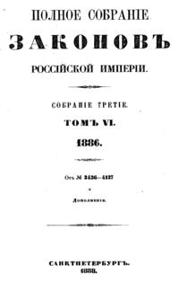 Полное собрание законов Российской Империи. Собрание Третье. Том VI