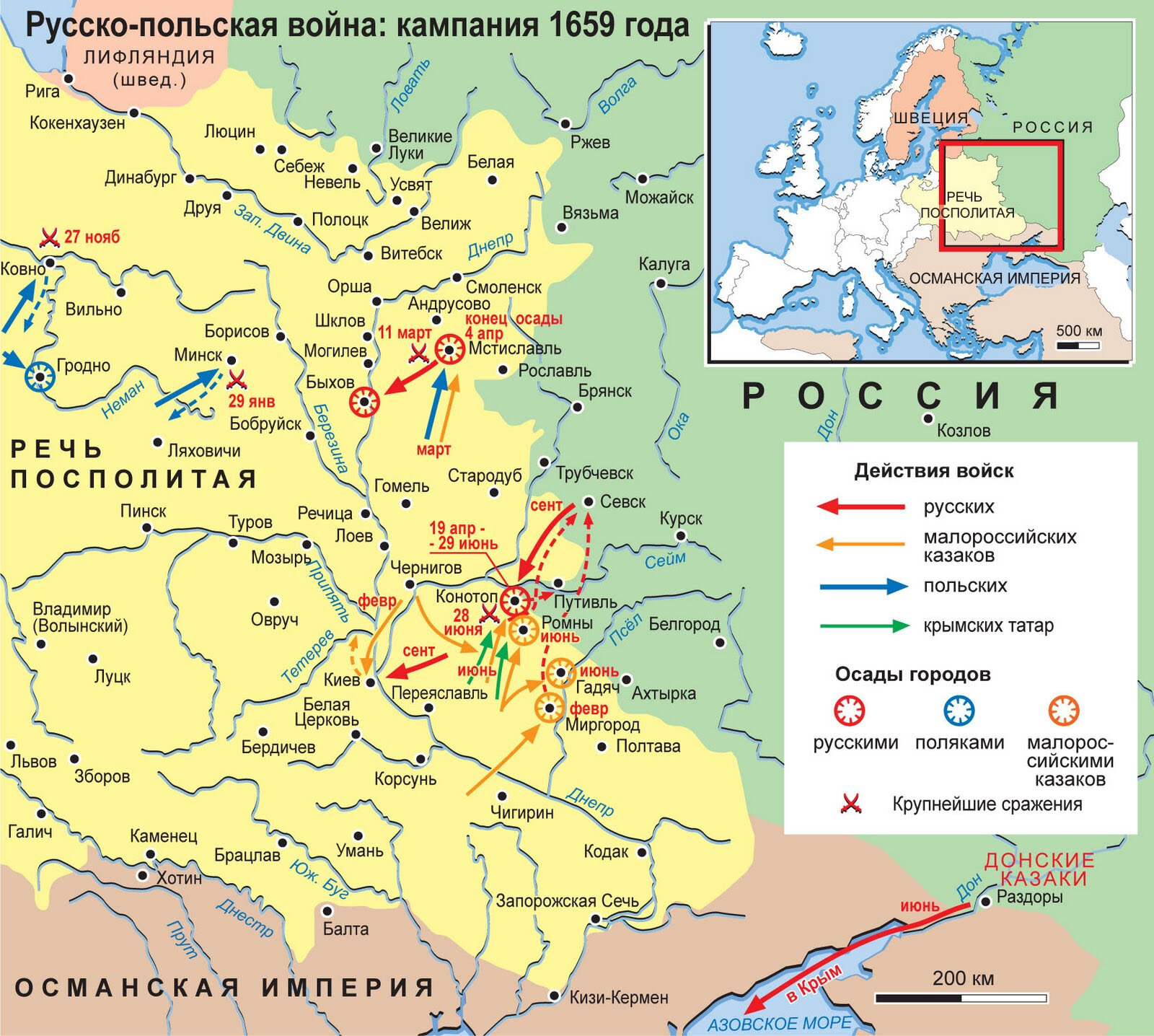 Карта кампании 1659 г. во время Русско-польской войны 1654 – 1667 гг.